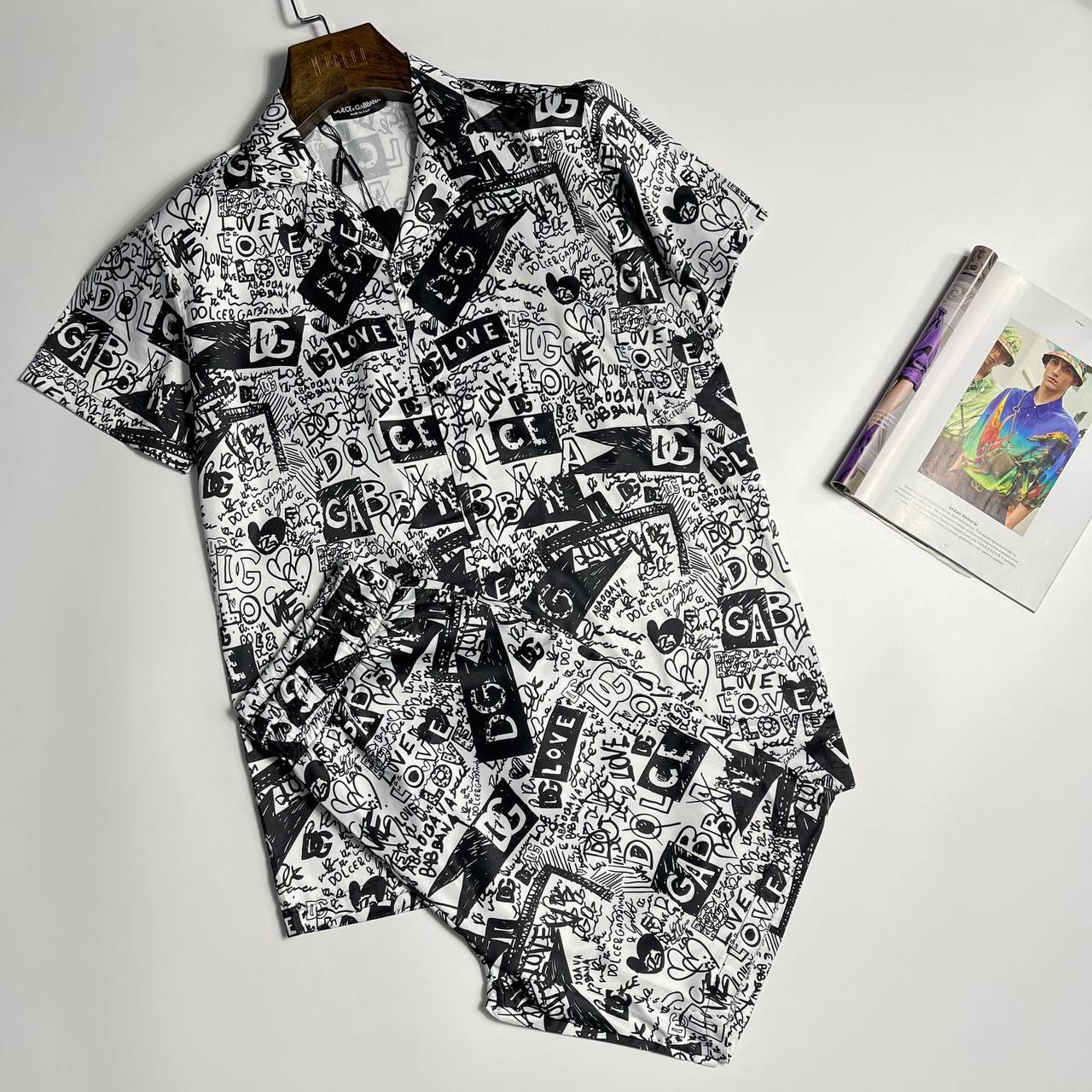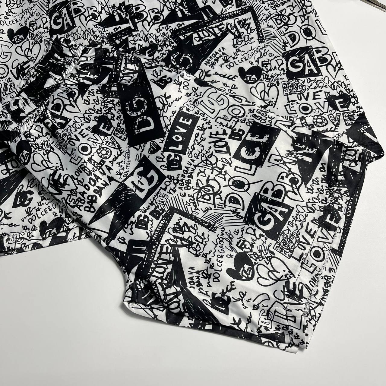 Костюм мужской Dolce & Gabbana LUX-107839 - это стильный комплект в монохромной гамме, который состоит из рубашки с короткими рукавами и шорт. Дизайн костюма включает в себя надписи, логотипы и графические элементы, делая его ярким и запоминающимся. Идеально подходит для создания современного и динамичного образа.