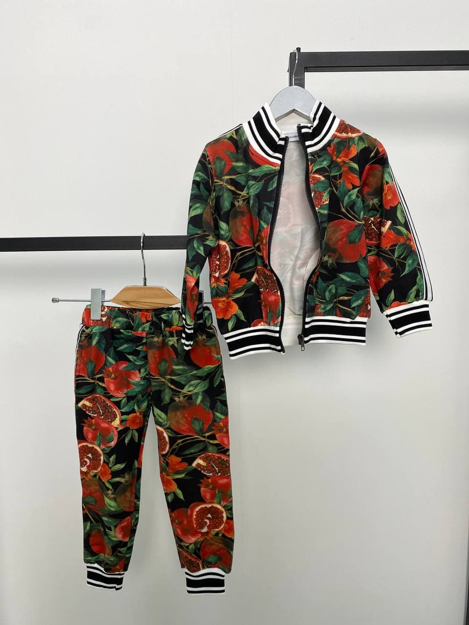 Спортивный костюм Dolce & Gabbana LUX-56684 – это стильный и яркий комплект, созданный для юных модников. Комплект выполнен в насыщенных тонах с оригинальным принтом, изображающим гранаты и листву, что придает ему уникальный вид. Представленный костюм Dolce & Gabbana LUX-56684 идеально подходит для повседневной носки, активного отдыха и занятий спортом.