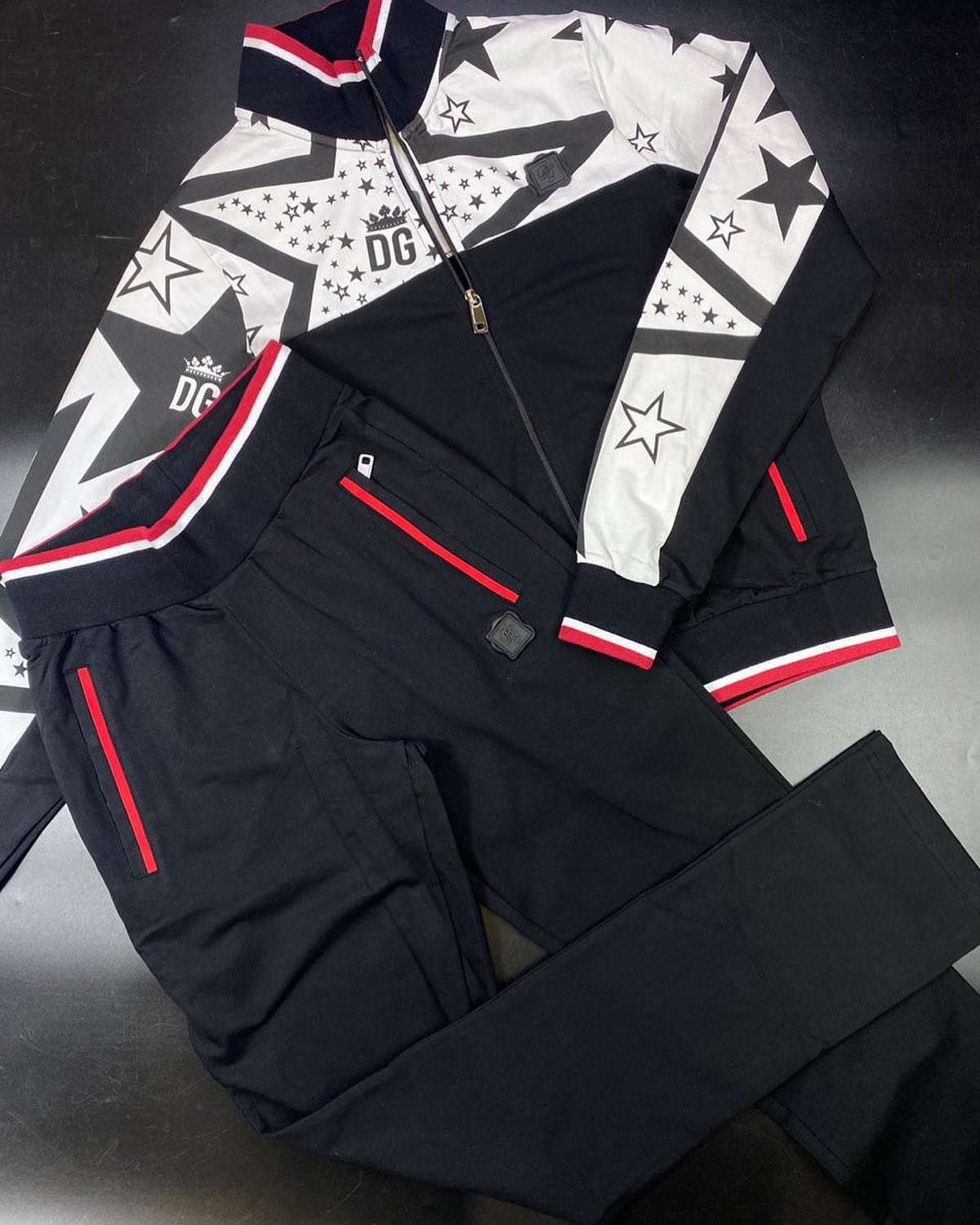Спортивный костюм Dolce & Gabbana LUX-37068 представляет собой стильный комплект, выполненный в современном дизайне. Сочетание черного, белого и красного цветов, а также оригинальный принт со звездами и логотипом бренда делают его эффектным выбором для активного образа жизни. Костюм идеально подходит для занятий спортом, прогулок и повседневного ношения, обеспечивая комфорт и свободу движений.