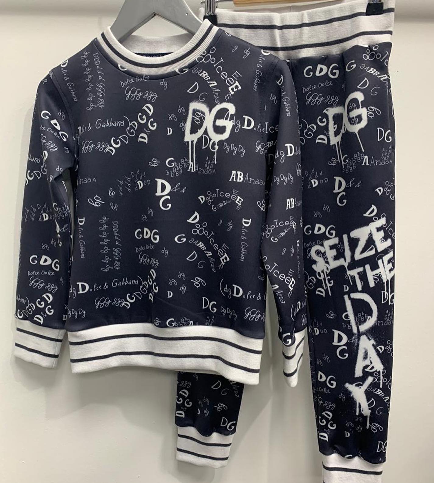 Этот спортивный костюм Dolce & Gabbana LUX-40708 представляет собой элегантное и стильное решение для повседневного гардероба. Комплект выполнен в темно-синем цвете с оригинальным принтом, включающим логотипы бренда и надписи. Костюм идеально подходит для создания расслабленных, но в то же время узнаваемых образов.