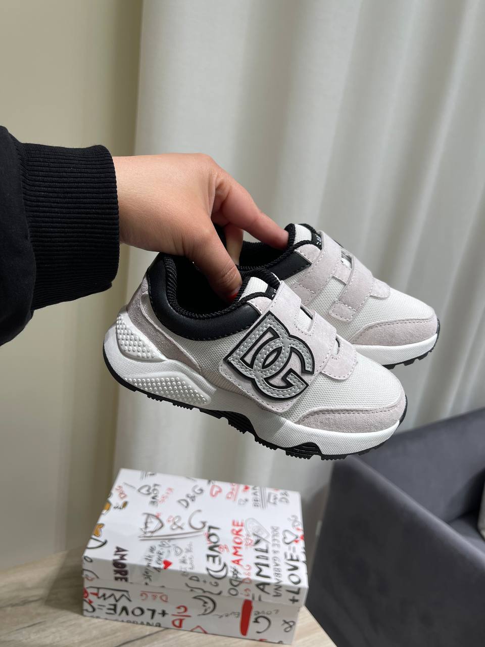 Кроссовки Dolce & Gabbana LUX-118616 — это стильная детская обувь, сочетающая в себе комфорт и элегантный дизайн. Белые кроссовки с серыми и черными акцентами, украшенные узнаваемым логотипом бренда, отлично подойдут для повседневной носки. Дизайн кроссовок подойдет для разных образов.