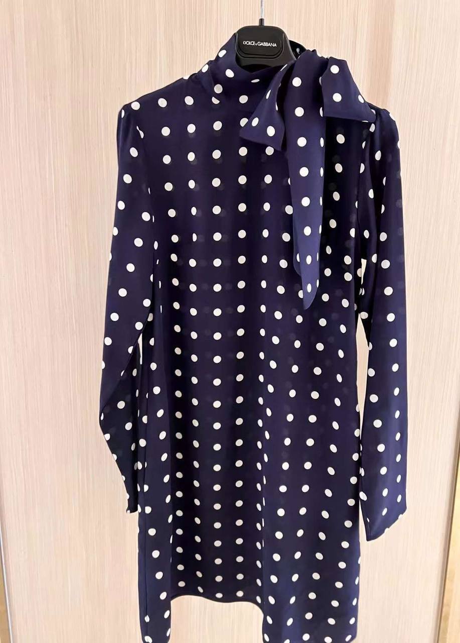 Платье Dolce & Gabbana LUX-99508 — элегантное платье в горошек, которое воплощает стиль итальянского бренда. Это платье выполнено в классическом темно-синем цвете с белым горошком, что создает привлекательный и игривый образ. Отлично подойдет для различных мероприятий, от повседневных встреч до вечерних выходов.
