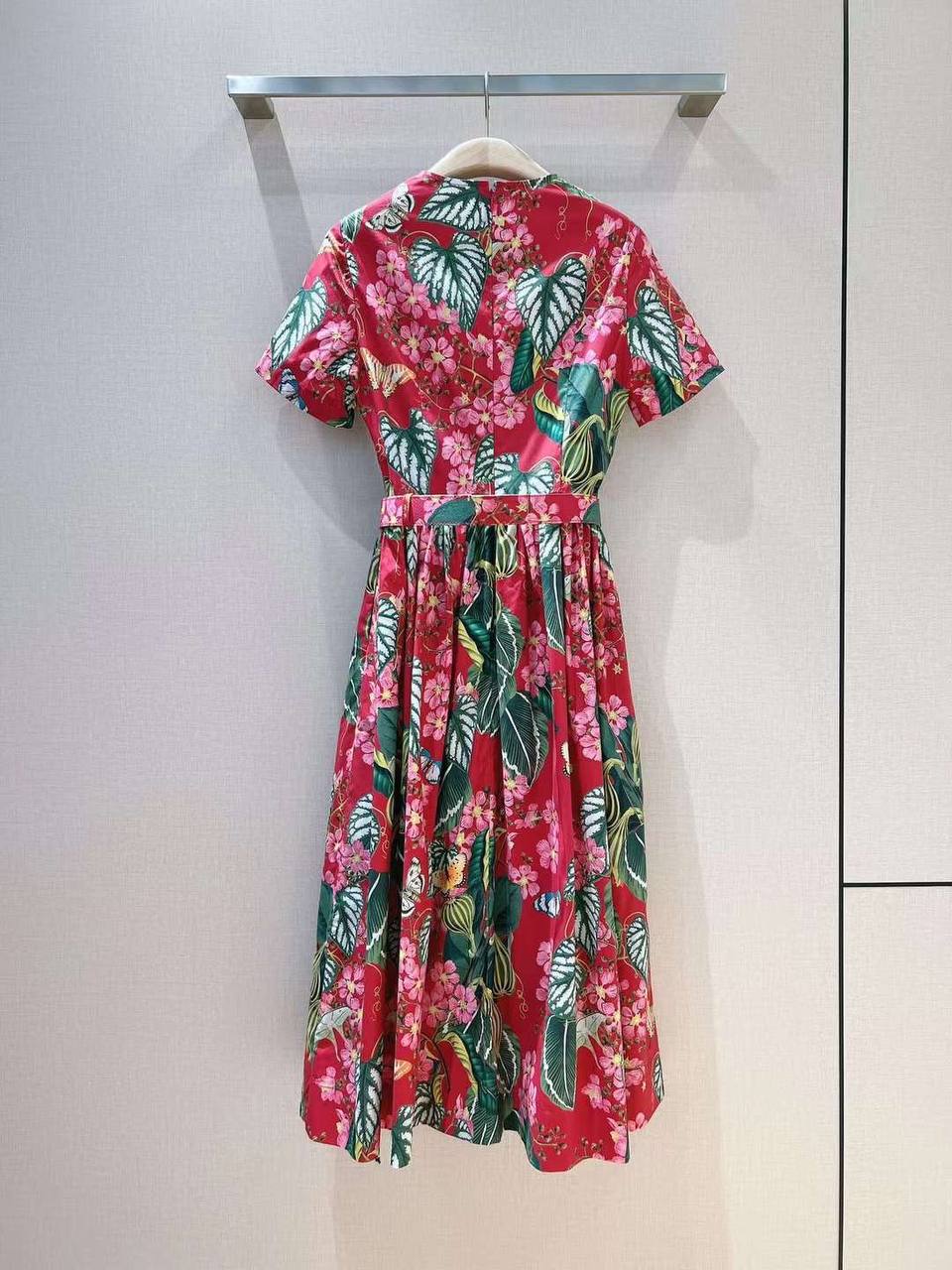 Платье Dolce & Gabbana LUX-83364 — это яркое платье миди с короткими рукавами и приталенным силуэтом. Платье выполнено в красном цвете с цветочным принтом. Оно идеально подойдет для создания женственного и элегантного образа.