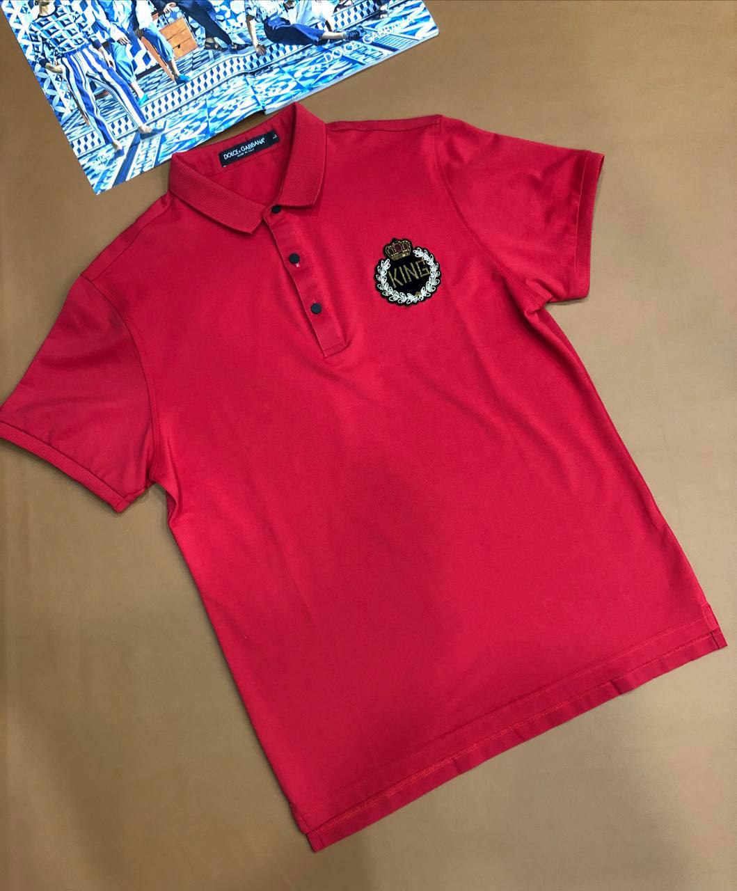 Это красное поло Dolce & Gabbana LUX-66046 — отличный выбор для тех, кто ценит сочетание комфорта и элегантности. Модель идеально подойдет как для создания повседневных, так и для более изысканных образов, подчеркивая ваш безупречный вкус. Декоративная нашивка с надписью "KING" добавляет изделию уникальности.