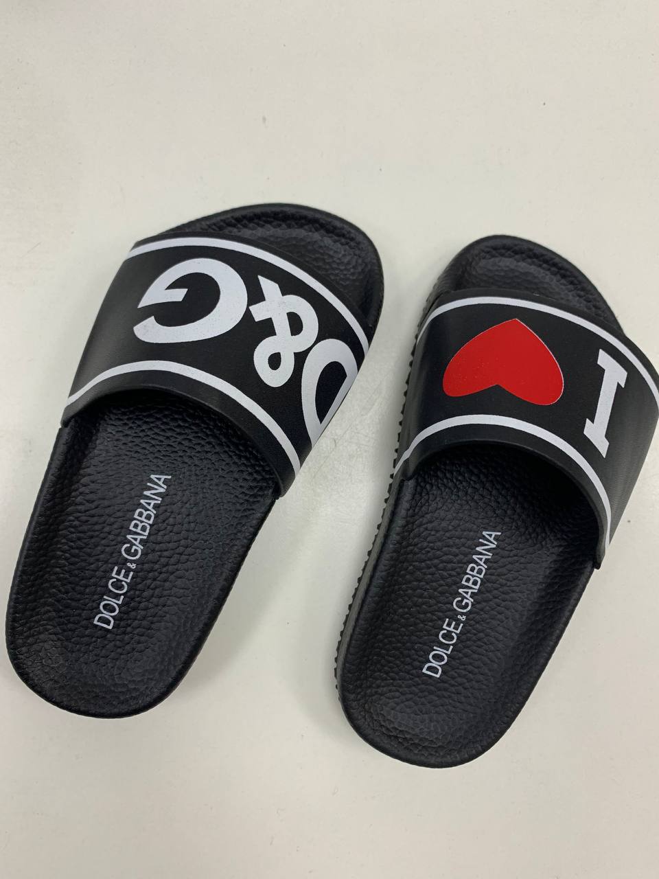 Шлёпанцы Dolce & Gabbana LUX-52165 - это стильная и комфортная обувь для повседневного ношения. Черный цвет с контрастными белыми и красными элементами делает их ярким акцентом образа. Дизайн шлёпанцев дополнен фирменным логотипом бренда и оригинальным принтом с сердцем.
