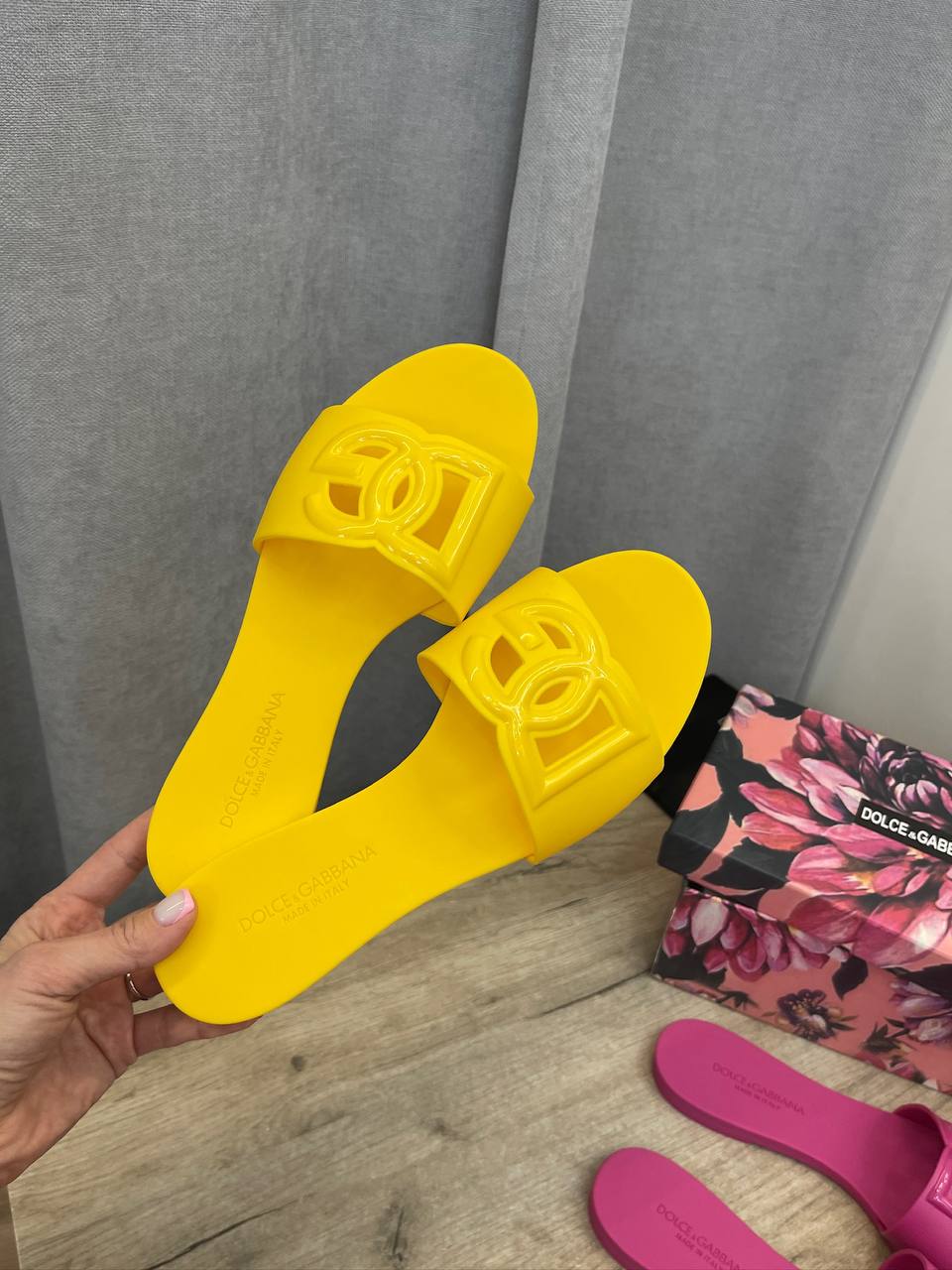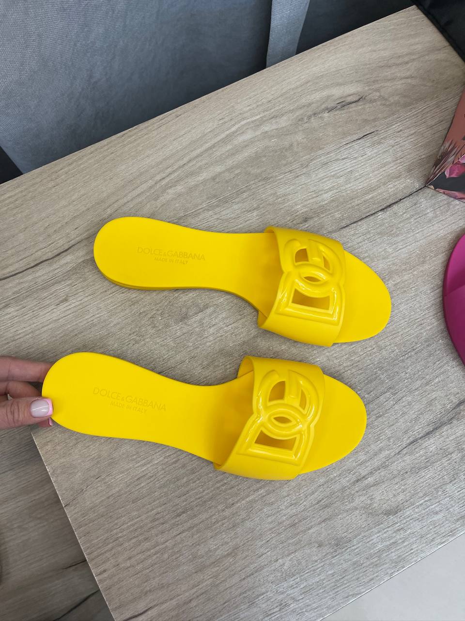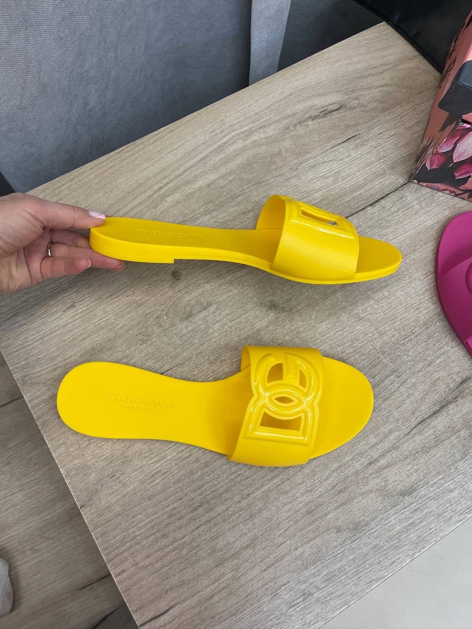 Шлепанцы Dolce & Gabbana LUX-107116 – это яркая и стильная обувь для летнего сезона. Шлепанцы выполнены в солнечно-желтом цвете, имеют лаконичный дизайн с логотипом бренда. Идеально подойдут для повседневной носки, пляжного отдыха или дополнения летнего образа.