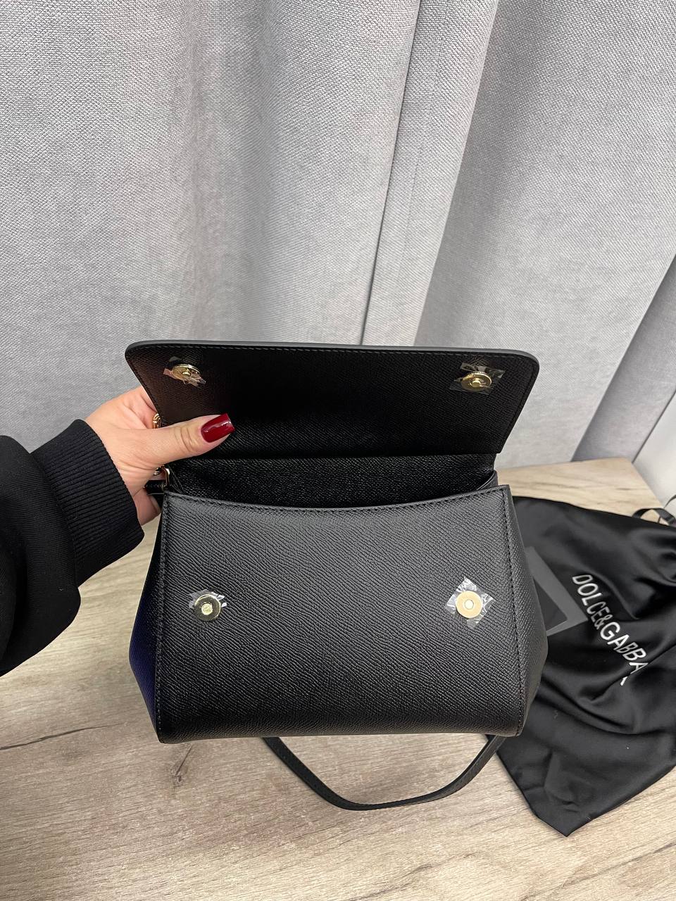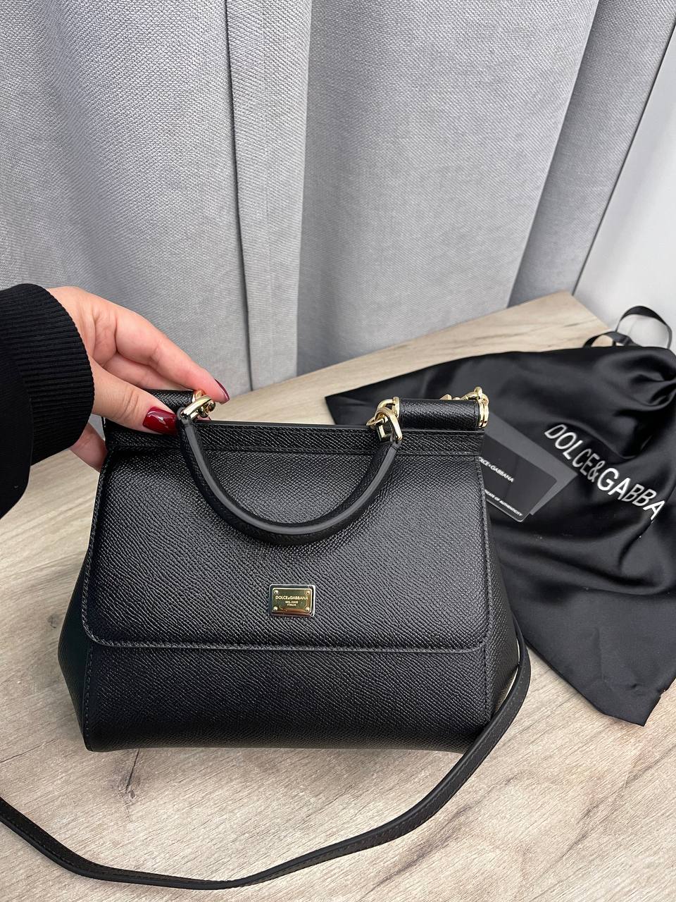 Сумка женская Dolce & Gabbana LUX-114254 — это стильная и элегантная сумка, выполненная в классическом черном цвете с золотистой фурнитурой. Она имеет лаконичный дизайн, структурированную форму и удобную ручку для переноски, а также съемный плечевой ремень. Эта сумка — идеальный аксессуар для создания образа в деловом или повседневном стиле.