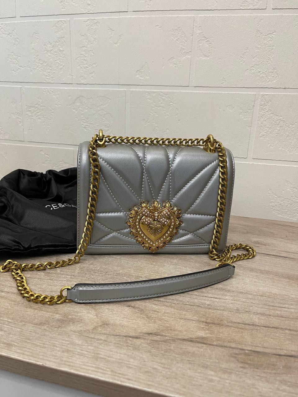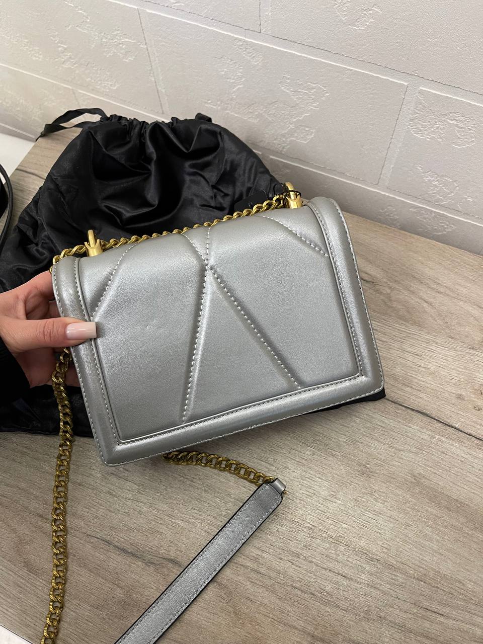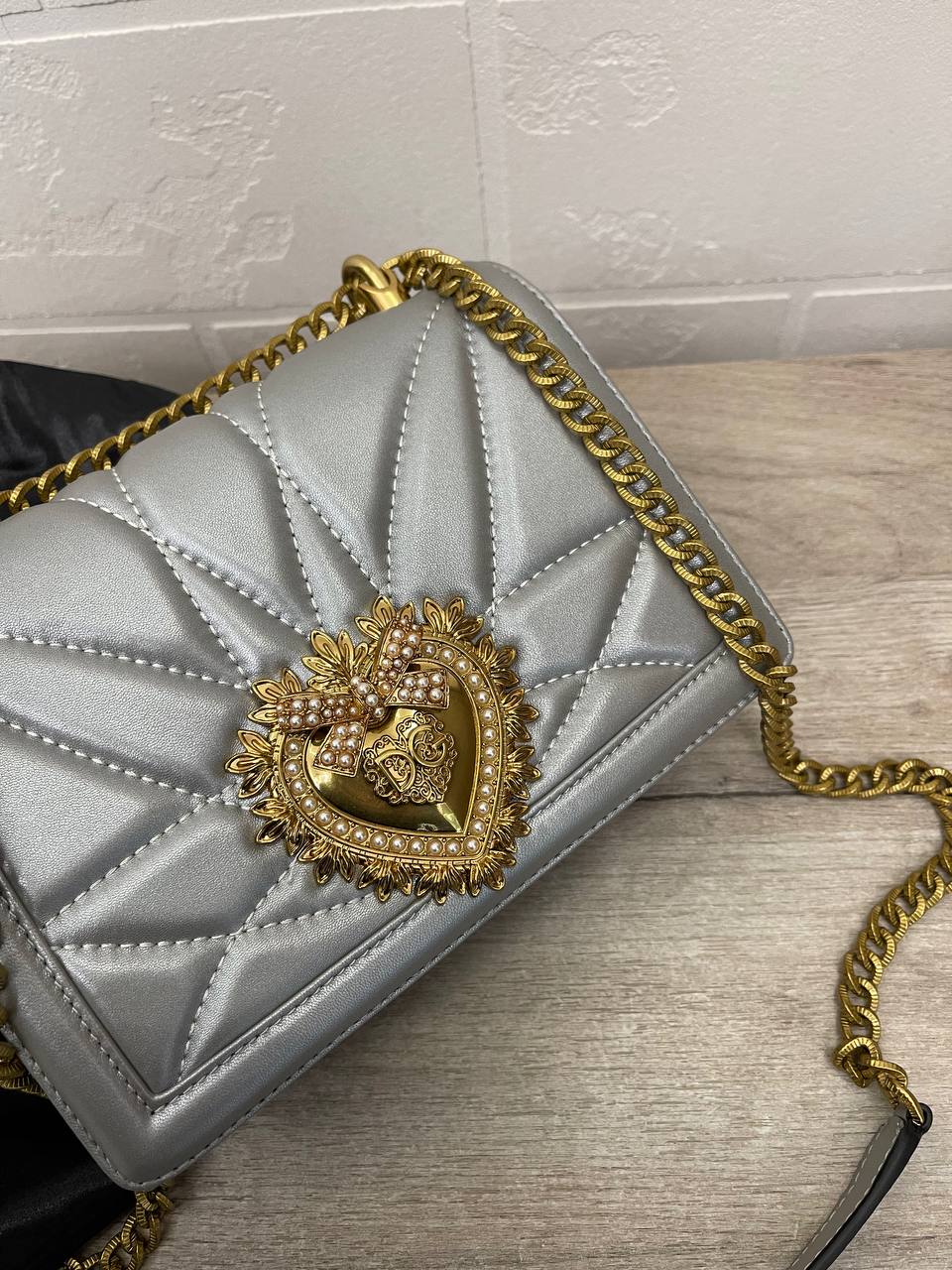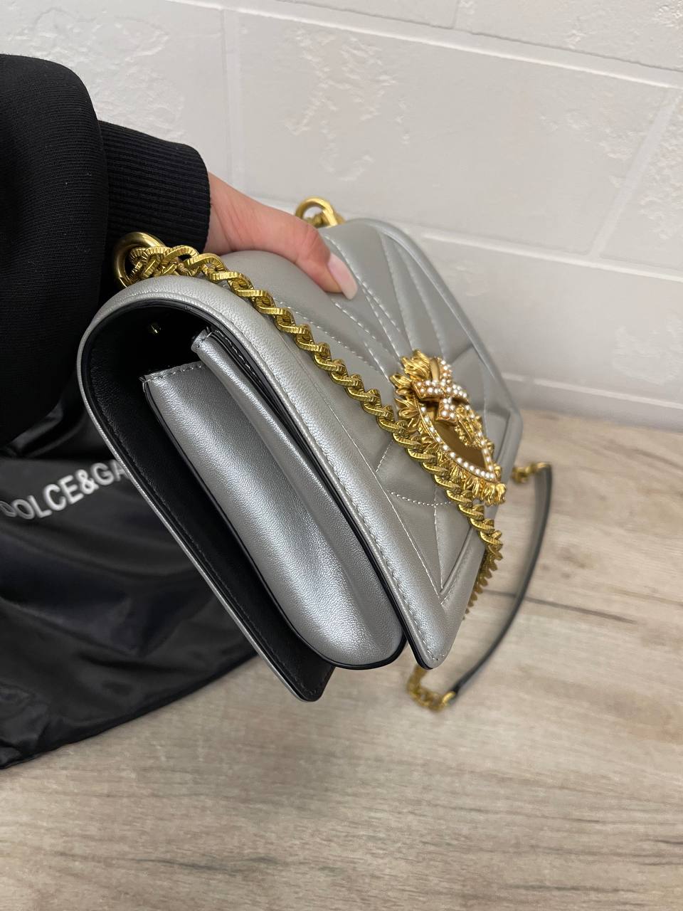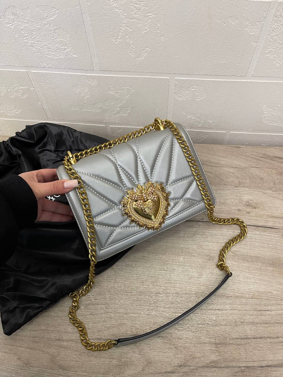Сумка женская Dolce & Gabbana LUX-115761 - это элегантный аксессуар для повседневного использования, выполненный в изысканном стиле. Серебристый цвет и стеганая текстура придают сумке особый шарм, а декоративный элемент в форме сердца добавляет нотку романтики. Она идеально подойдет для дополнения как повседневных, так и вечерних образов.