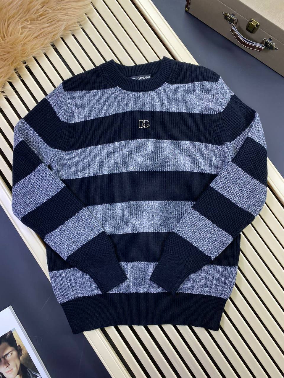 Свитер мужской Dolce & Gabbana LUX-77287 - это стильный предмет гардероба, который сочетает в себе элегантность и комфорт. Свитер выполнен в классическом дизайне с чередующимися полосами темно-синего и серого цвета. Данный свитер идеально подходит для создания повседневных и более формальных образов.