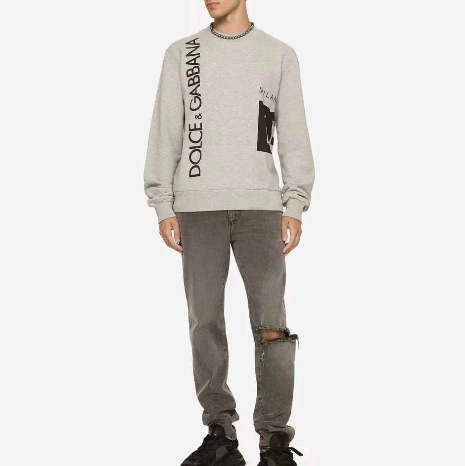Свитшот Dolce & Gabbana LUX-95227 представляет собой стильный предмет гардероба, выполненный в современном стиле. Свитшот серого цвета с контрастным черным логотипом бренда вдоль рукава и надписью «MILAN» с графическим элементом. Эта модель подойдет для создания повседневных образов.