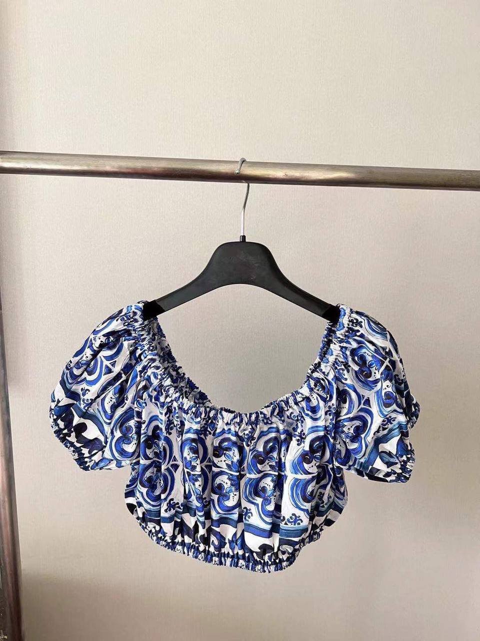 Топ Dolce & Gabbana LUX-71615 – это стильный и элегантный предмет гардероба, который станет прекрасным дополнением к вашему образу. Топ выполнен в ярком бело-синем цвете с уникальным принтом. Он отлично подходит для создания как повседневных, так и более нарядных образов.