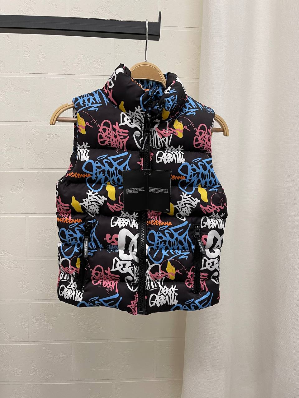 Жилет Dolce & Gabbana LUX-102265 - это стильный элемент гардероба, представленный в молодежном стиле. Жилет выполнен в черном цвете с ярким граффити-принтом, что делает его выразительным и запоминающимся. Он идеально подойдет для создания оригинальных и модных образов.