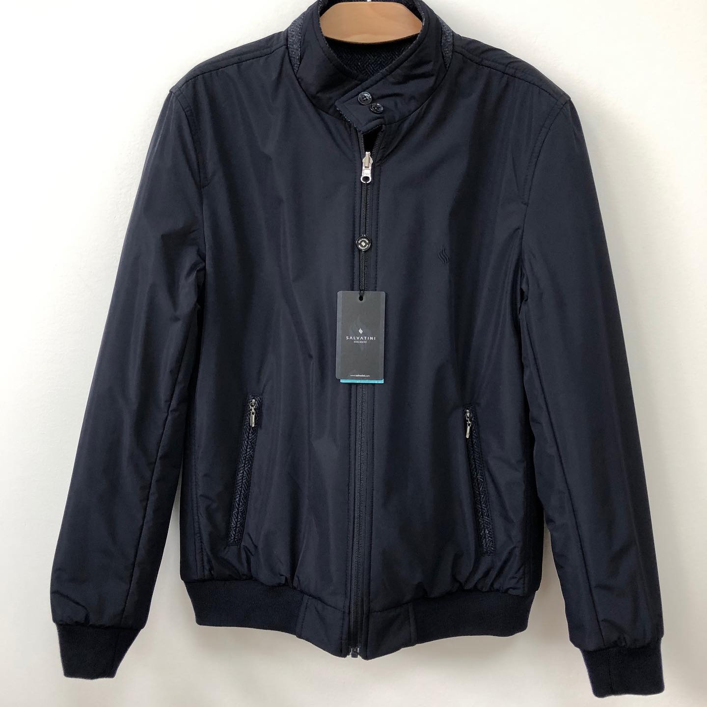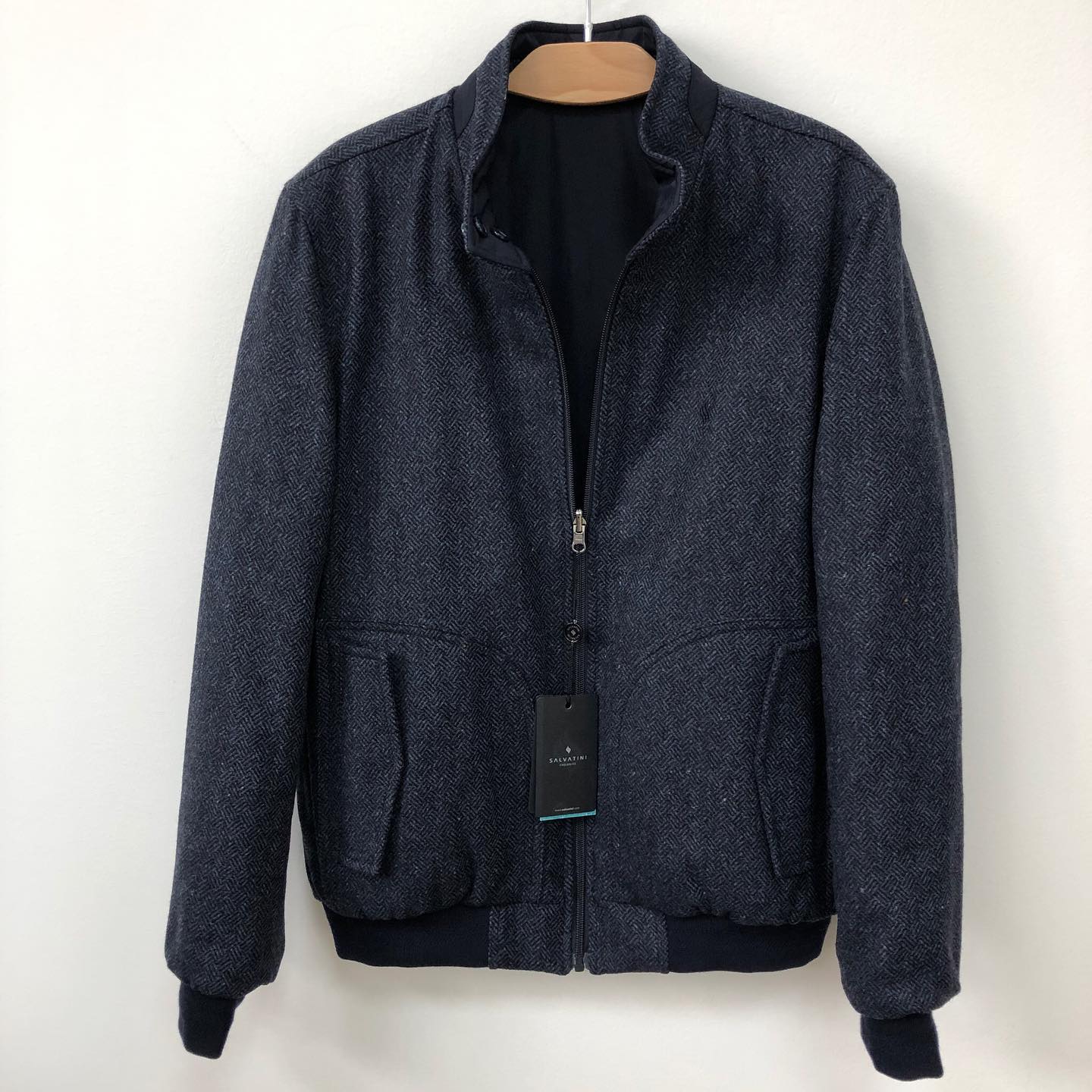 Двухсторонняя куртка SALVATINI LUX-34691 представляет собой стильное и практичное решение для современного гардероба. Эта куртка выполнена в элегантном темно-синем цвете с узором "ёлочка", что придает ей изысканный вид. Благодаря двухстороннему дизайну, она предлагает две различные стилизации, делая ее универсальным элементом одежды.