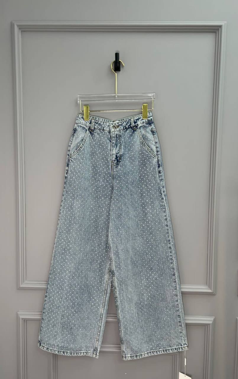 Джинсы LUX-101450 - это стильные джинсы, представленные в широком прямом крое. Они выполнены в светло-голубом цвете с текстурой денима и украшены россыпью страз. Эта модель станет отличным выбором для создания ярких и запоминающихся образов.