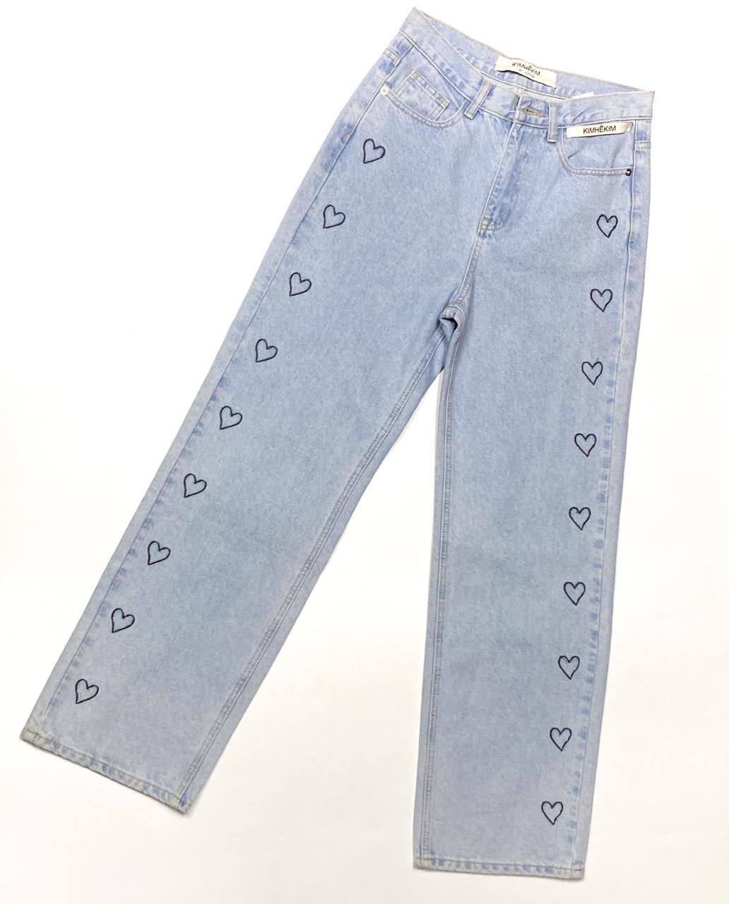 Джинсы LUX-64437 от бренда KIMH?KIM — это стильный выбор для тех, кто ценит оригинальность и комфорт. Эта модель выполнена в современном дизайне и украшена повторяющимся принтом в виде сердечек, придающим ей игривый и модный вид. Идеально подходят для создания повседневных образов с характером.