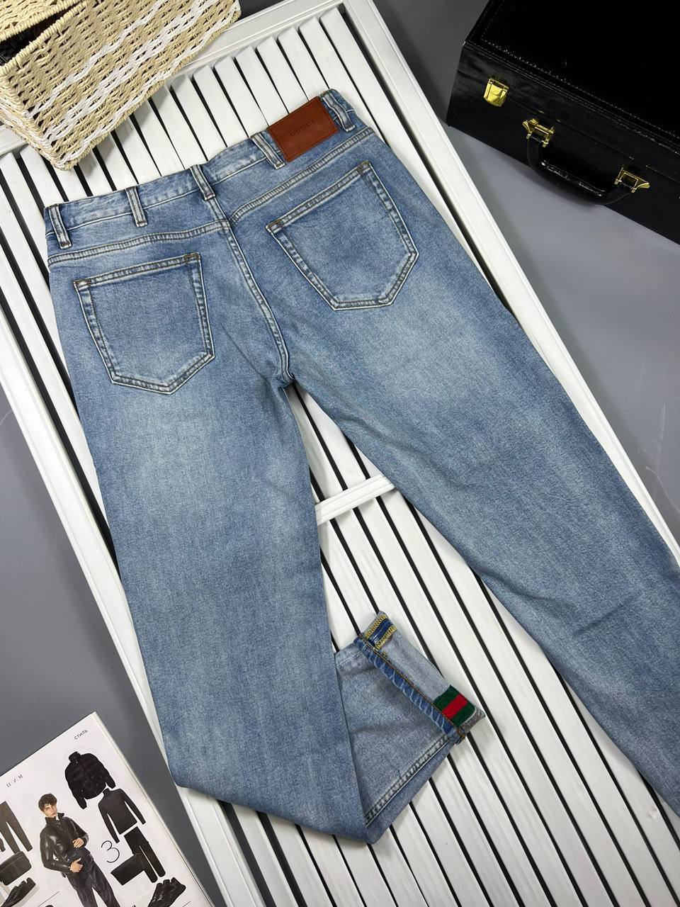 Джинсы Gucci LUX-67023 – это стильная модель, отличающаяся классическим кроем и современными деталями. Светло-голубой деним с легким эффектом потертости придает им непринужденный вид. Оригинальный акцент – цветная полоса на отвороте, выполненная в фирменном стиле бренда, добавляет изделию узнаваемости.