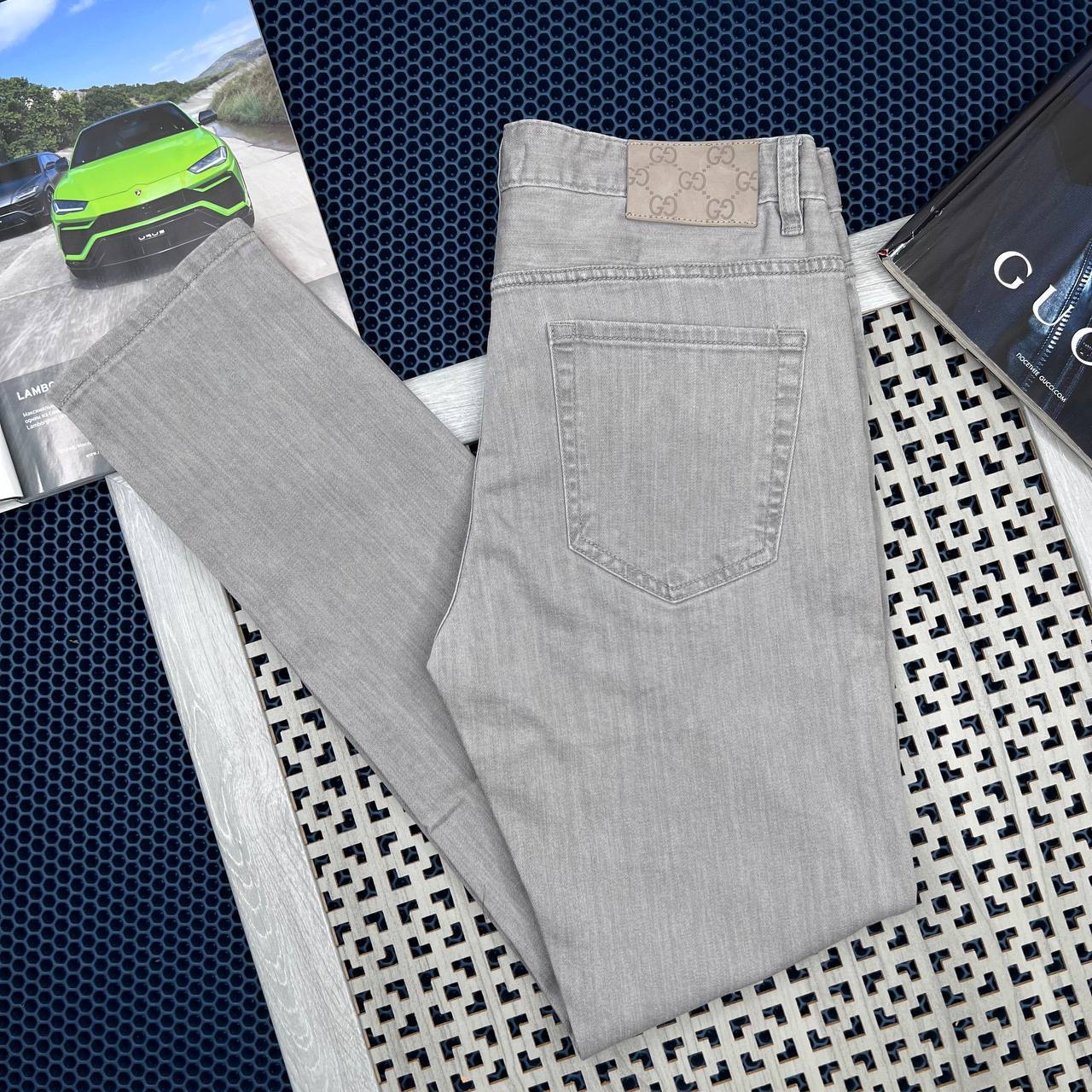 Джинсы Gucci LUX-72779 — это воплощение элегантности и стиля. Серый цвет ткани в сочетании с классическим кроем делают их универсальным элементом гардероба. Эти джинсы отлично подойдут для создания как повседневных, так и более формальных образов.