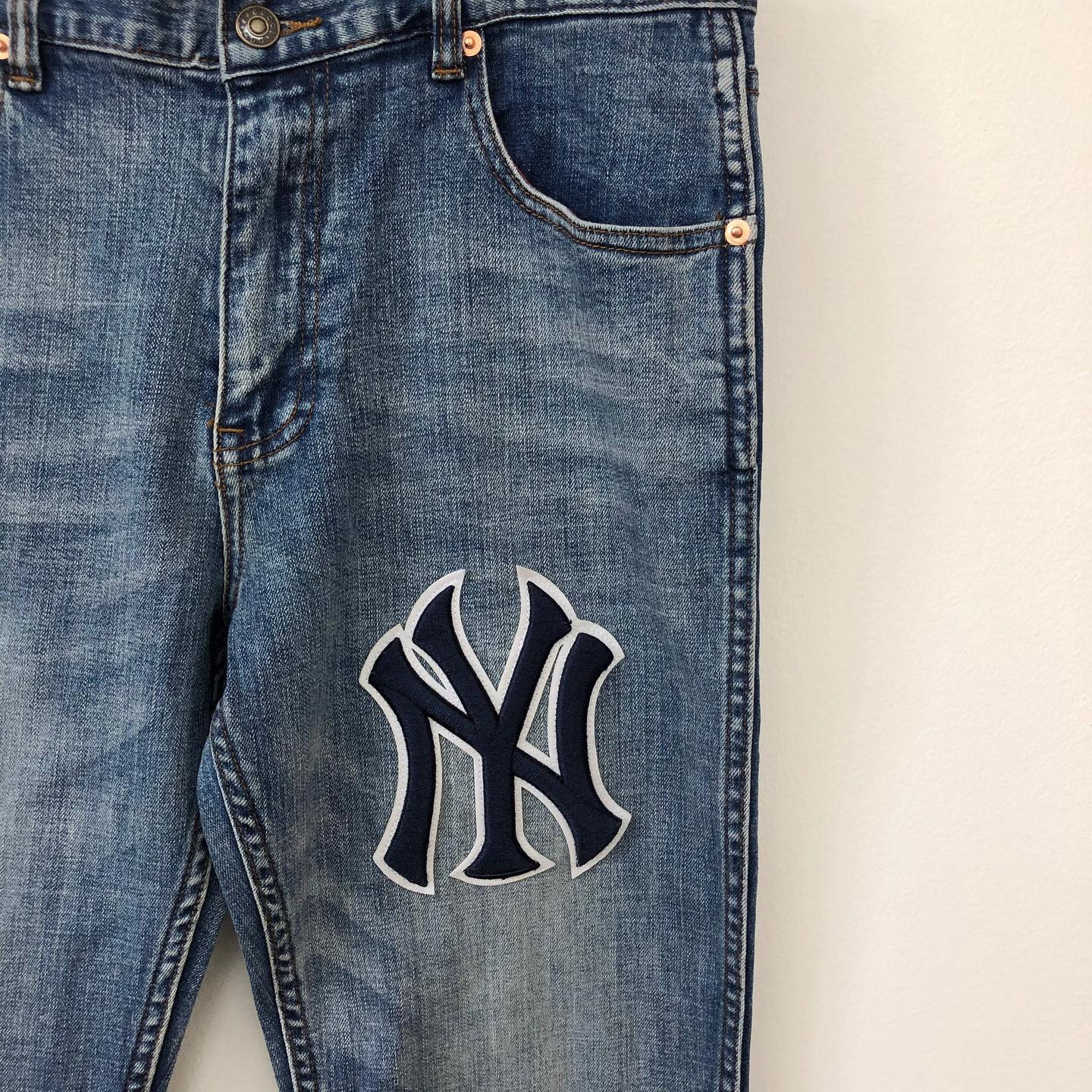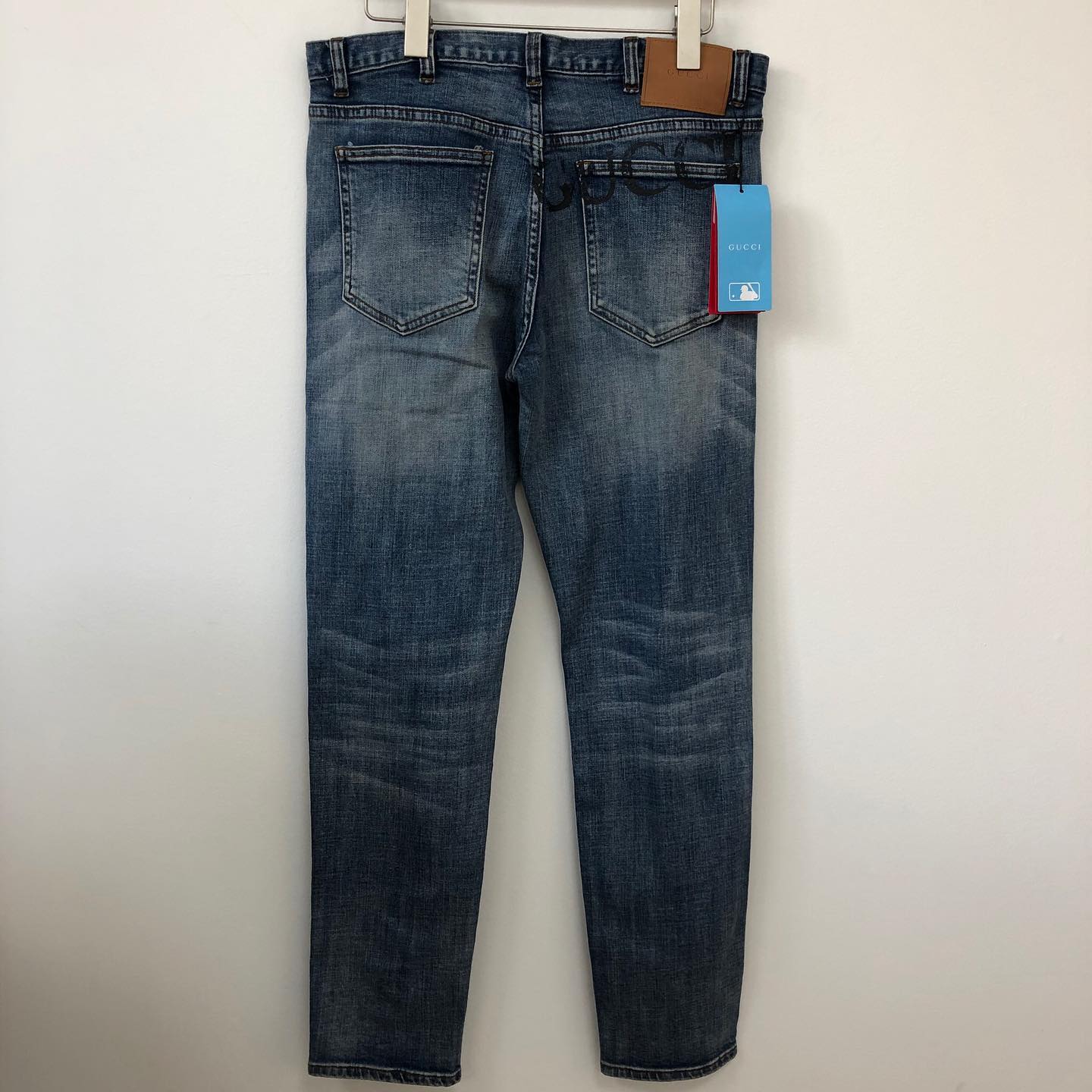 Эти мужские джинсы Gucci LUX-35444 представляют собой современный взгляд на классический деним. Дизайн дополнен эффектной аппликацией с эмблемой команды New York Yankees, что придает им спортивный и модный акцент. Прямой крой обеспечивает комфорт и легкость движений, делая эту модель универсальной для создания разнообразных образов.