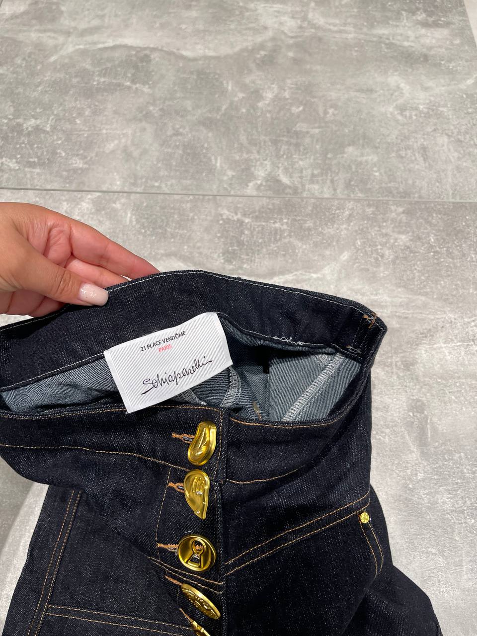 Джинсы Schiaparelli LUX-120358 – это смелый и стильный элемент гардероба, сочетающий в себе классический деним и оригинальные детали. Благодаря высокой посадке и широким штанинам, эти джинсы создают эффектный силуэт.