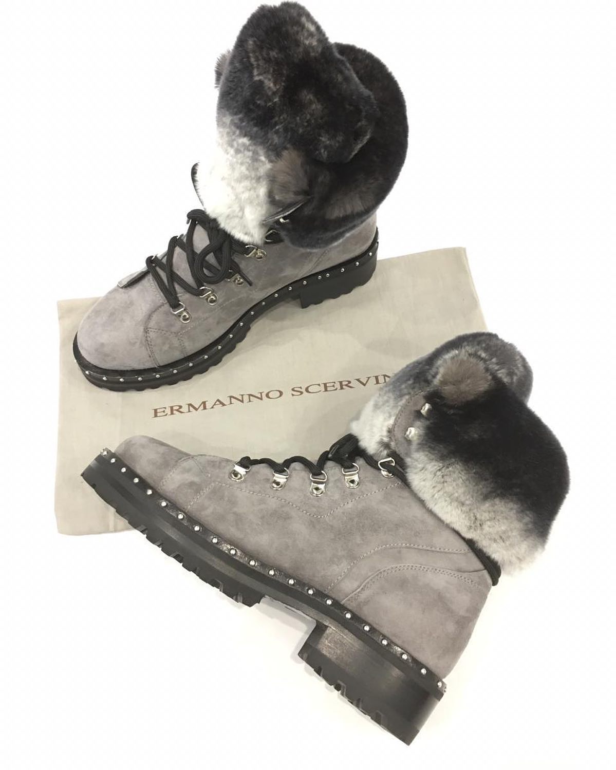 Эти женские ботинки Ermanno Scervino (LUX-37387) сочетают в себе элегантность и практичность. Модель выполнена в сером цвете с отделкой из меха, что придает ей особый шарм. Прочная подошва и детали в виде заклепок подчеркивают оригинальный дизайн. Эти ботинки станут отличным дополнением к повседневному и более изысканному гардеробу.