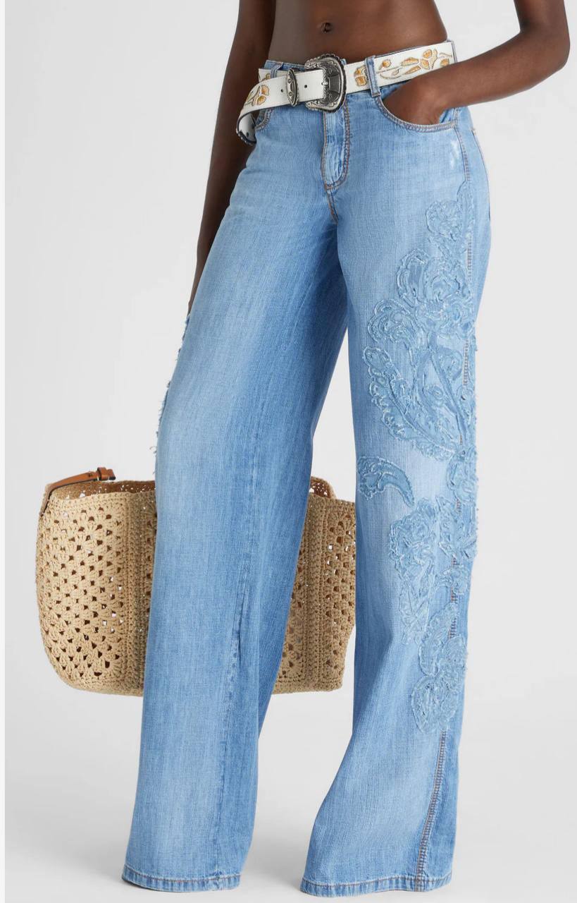 Джинсы Ermanno Scervino LUX-119918 — это стильные джинсы с широким кроем и уникальным дизайном. Светло-голубой цвет и декоративная вышивка создают неповторимый образ. Джинсы идеально подойдут для создания повседневных и элегантных образов.