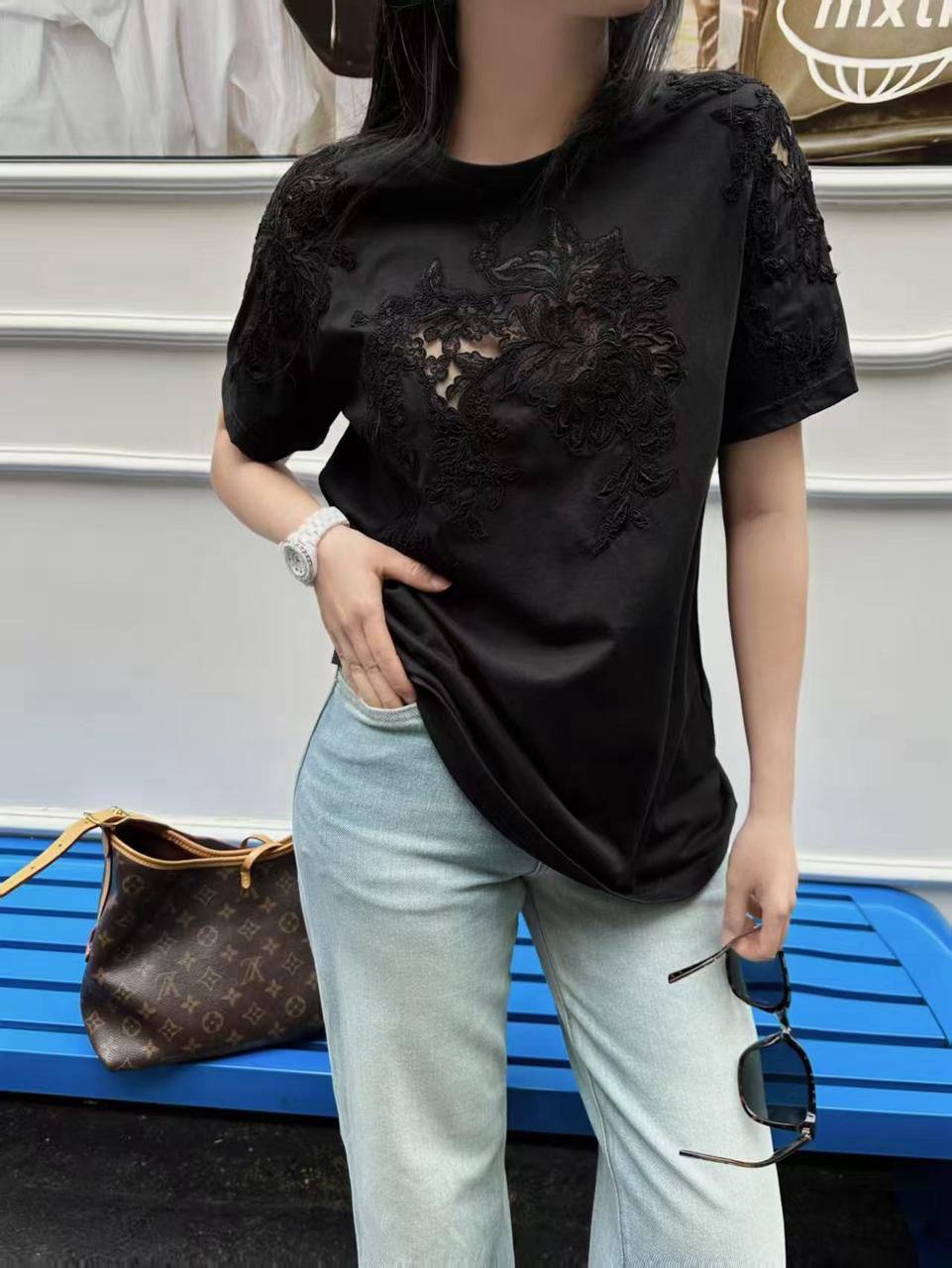 Футболка Ermanno Scervino LUX-116553 - это элегантная модель, которая сочетает в себе классический стиль и изысканные детали. Футболка черного цвета с кружевными элементами, создает неповторимый образ. Идеальна для создания как повседневных, так и более нарядных образов.
