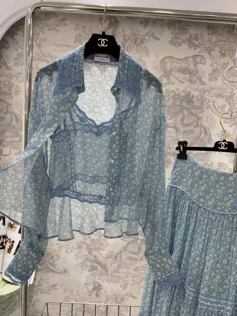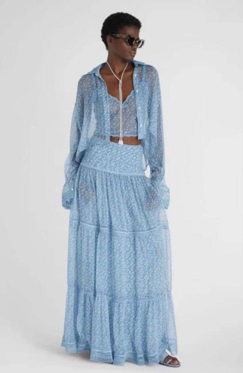 Ermanno Scervino костюм женский LUX-121524 - это элегантный и легкий костюм, выполненный в нежном цветочном принте. Он идеально подойдет для создания романтичного образа в летний период.