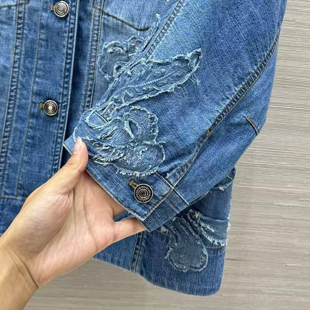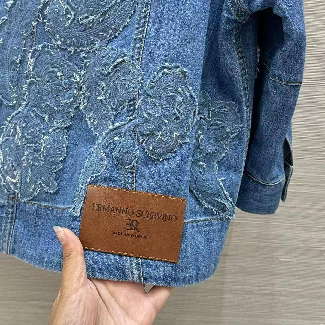 Куртка Ermanno Scervino LUX-119915 — это стильная джинсовая куртка классического кроя, украшенная декоративными элементами. Цвет изделия — синий. Куртка подходит для создания повседневных образов, добавляя нотку элегантности.