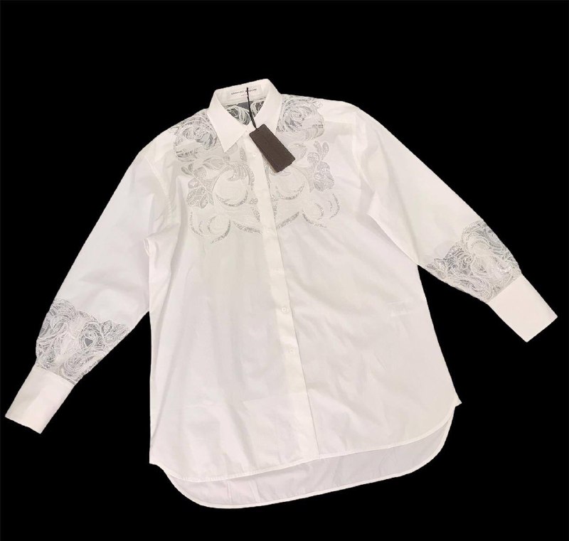 Элегантная белая рубашка Ermanno Scervino LUX-49281 — это воплощение изысканного стиля и высокого качества. Эта женская рубашка отличается изящной вышивкой на груди и рукавах, выполненной в серебристых тонах, что придает ей особую утонченность. Она идеально подойдет для создания как деловых, так и вечерних образов.