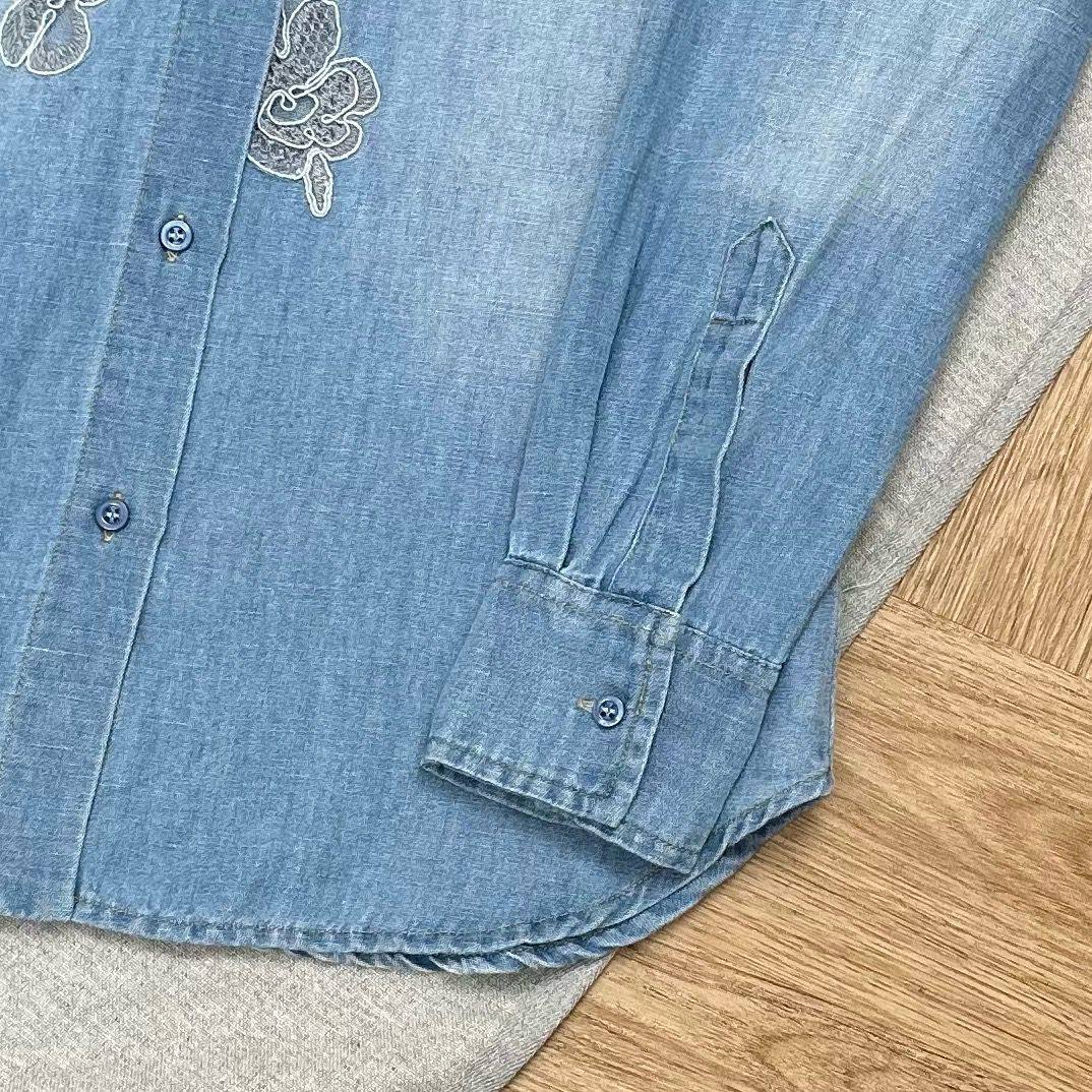 Рубашка Ermanno Scervino LUX-113467 представляет собой джинсовую рубашку с изысканной отделкой в виде кружевных вставок. Светло-голубой цвет и кружевной декор добавляют изделию женственности и элегантности. Эта рубашка идеально подойдет для создания как повседневных, так и более нарядных образов.