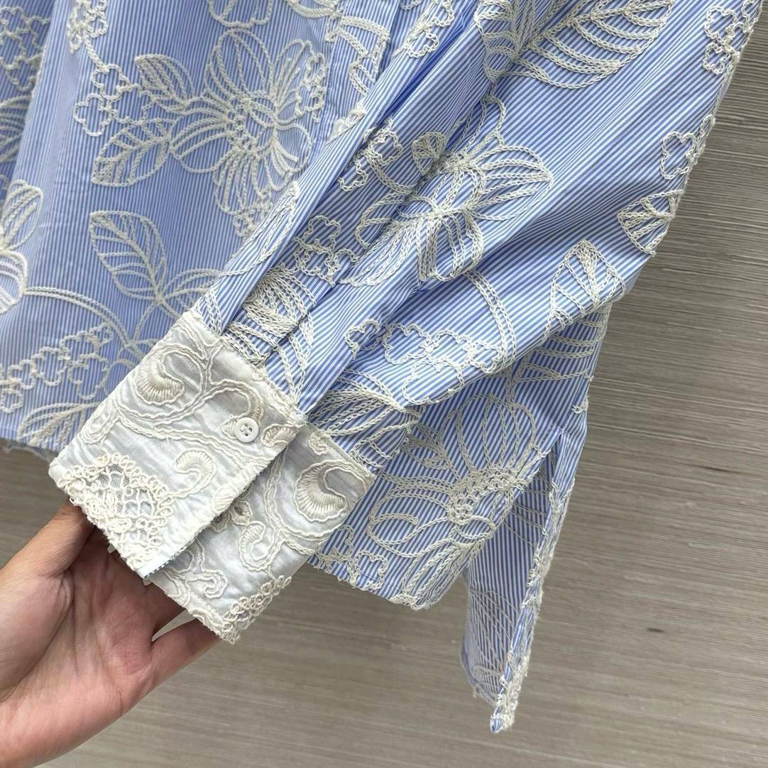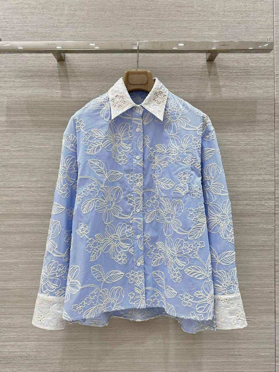 Рубашка Ermanno Scervino LUX-117729 - это изысканный образец женской одежды. Рубашка выполнена в классическом стиле, с длинными рукавами и воротником. Нежный голубой цвет в полоску с белой вышивкой создает элегантный и женственный образ, идеально подходящий для различных поводов.