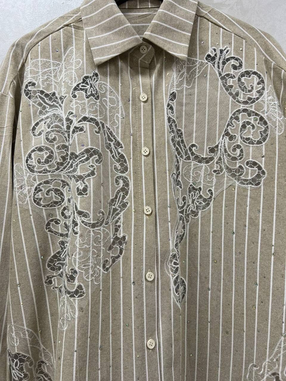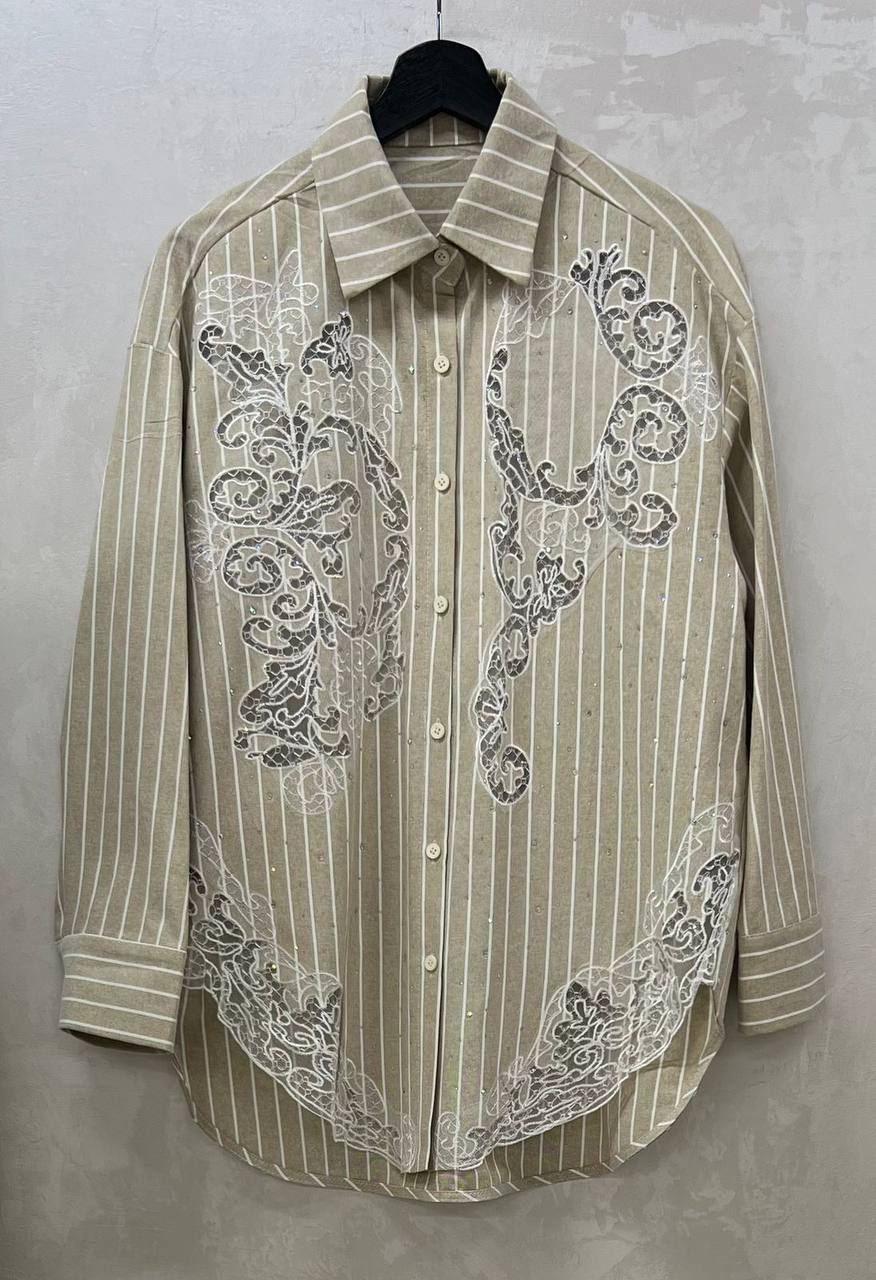 Рубашка Ermanno Scervino – это элегантный и современный выбор для создания стильного образа. Модель в полоску с декоративными элементами.