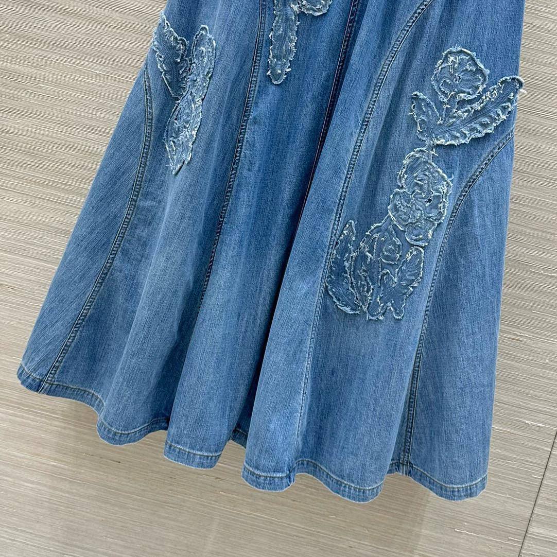 Юбка Ermanno Scervino LUX-119101 - это стильная джинсовая юбка-миди с оригинальными декоративными элементами. Она выполнена в классическом синем цвете с добавлением изысканных деталей в виде аппликаций. Такая юбка станет прекрасным дополнением к вашему гардеробу, подчеркивая индивидуальность и хороший вкус.
