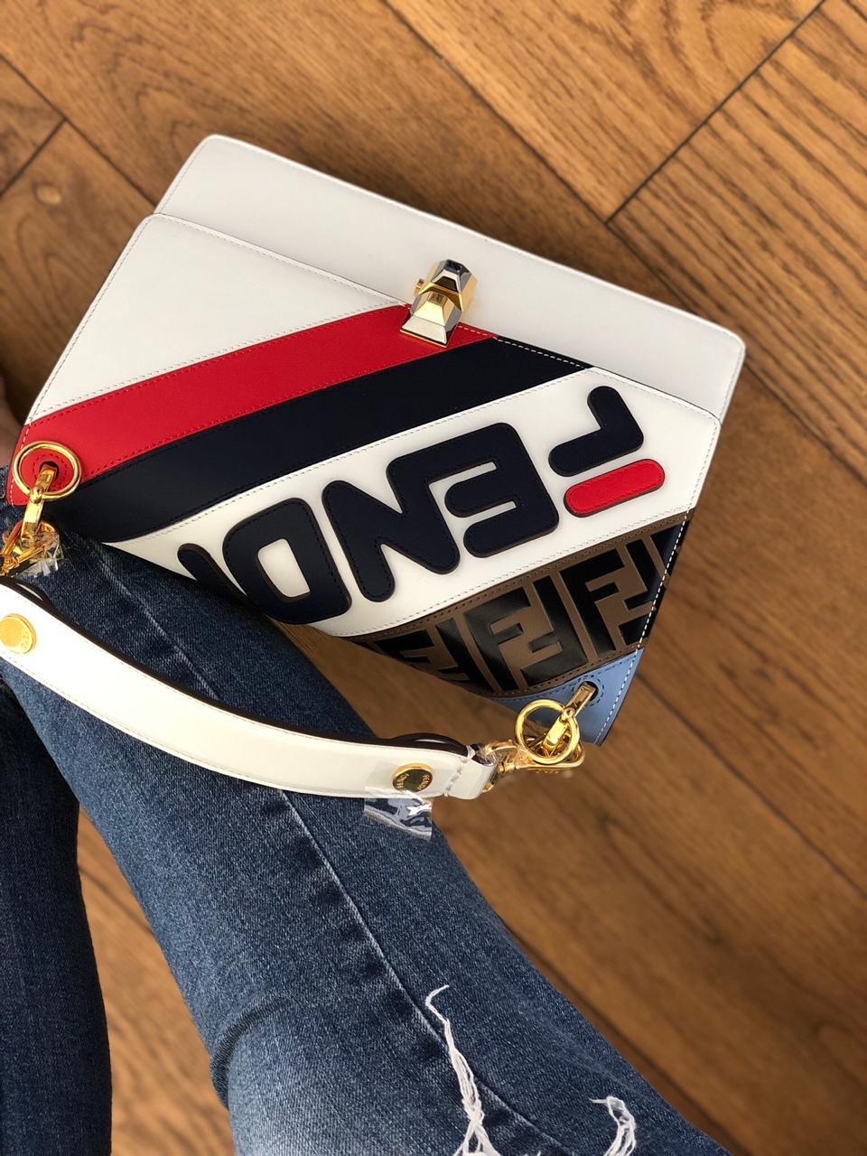 Сумка женская Fendi СЖ-625 — это стильный аксессуар, отличающийся оригинальным дизайном и высококачественными материалами. Сочетание фирменного монограммного принта FF и контрастных полос в красно-сине-белой гамме придает изделию узнаваемый вид. Застежка-клапан с золотистой фурнитурой и тиснением "ROMA" добавляет элегантности. Эта сумка идеально подойдет для создания ярких и запоминающихся образов.
