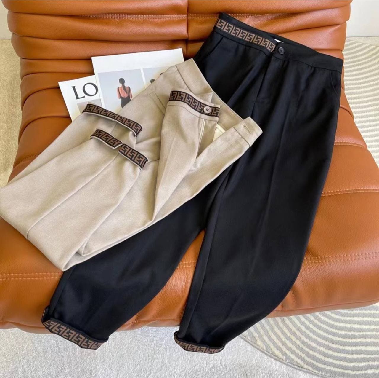 Эти брюки Fendi LUX-58828 представляют собой элегантное решение для современного гардероба. Модель сочетает в себе классический крой и узнаваемый дизайнерский элемент в виде фирменного узора, который акцентирует внимание на талии и манжетах. Они идеально подойдут для создания как деловых, так и повседневных образов, добавляя утонченности любому наряду.