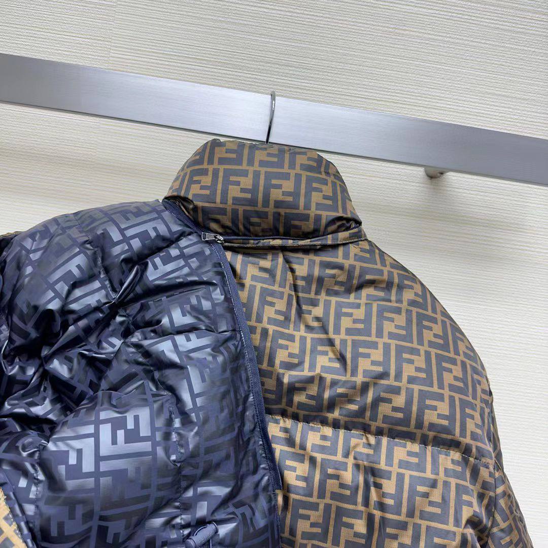 Двухсторонний пуховик Fendi LUX-98789 - это стильная зимняя куртка, сочетающая в себе роскошь и функциональность. Куртка выполнена в фирменном стиле бренда, имеет узнаваемый принт с логотипами, что делает ее узнаваемой и модной.