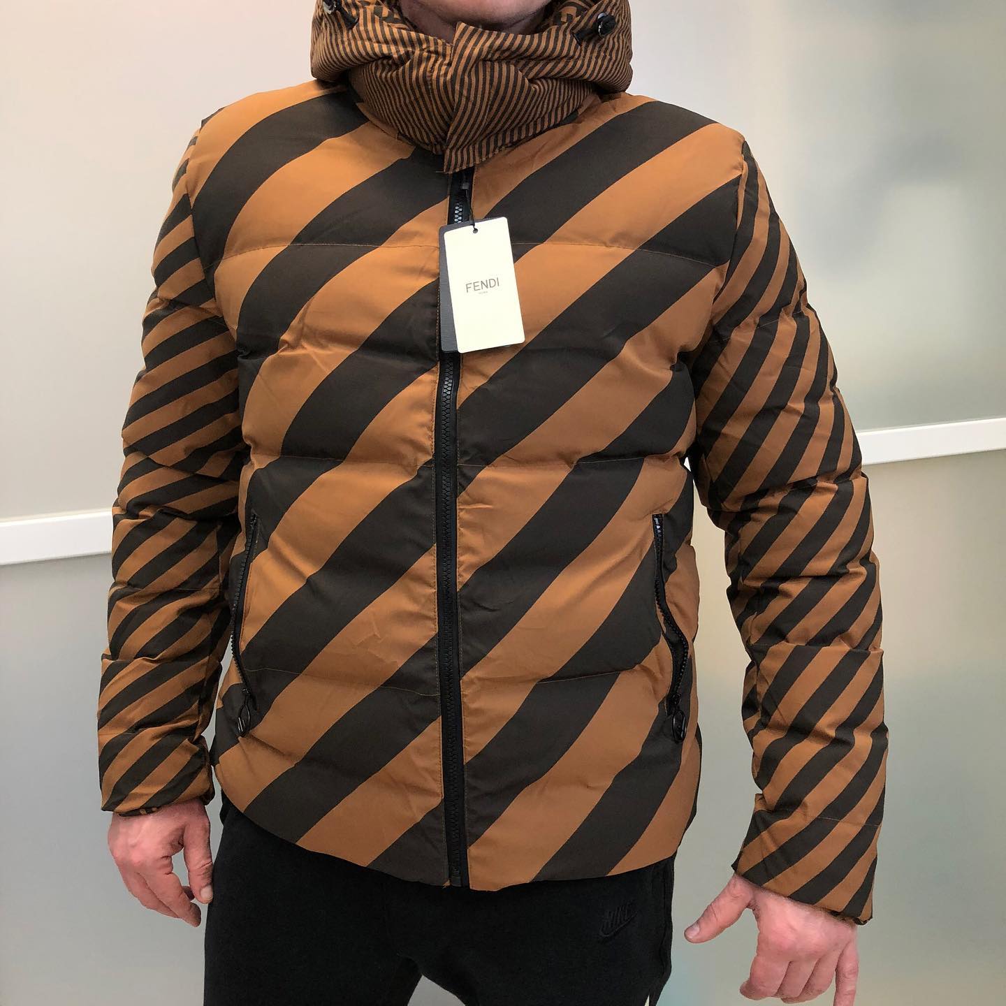 Двухсторонняя куртка Fendi LUX-37610 представляет собой стильное и практичное решение для современного гардероба. Куртка выполнена в узнаваемом стиле бренда Fendi, сочетая в себе высокое качество и оригинальный дизайн. Оригинальный принт в виде диагональных полос коричневого и черного цветов придает изделию динамичность и модный вид. Эта куртка идеально подойдет для создания как повседневных, так и более элегантных образов, обеспечивая комфорт и защиту от прохлады.