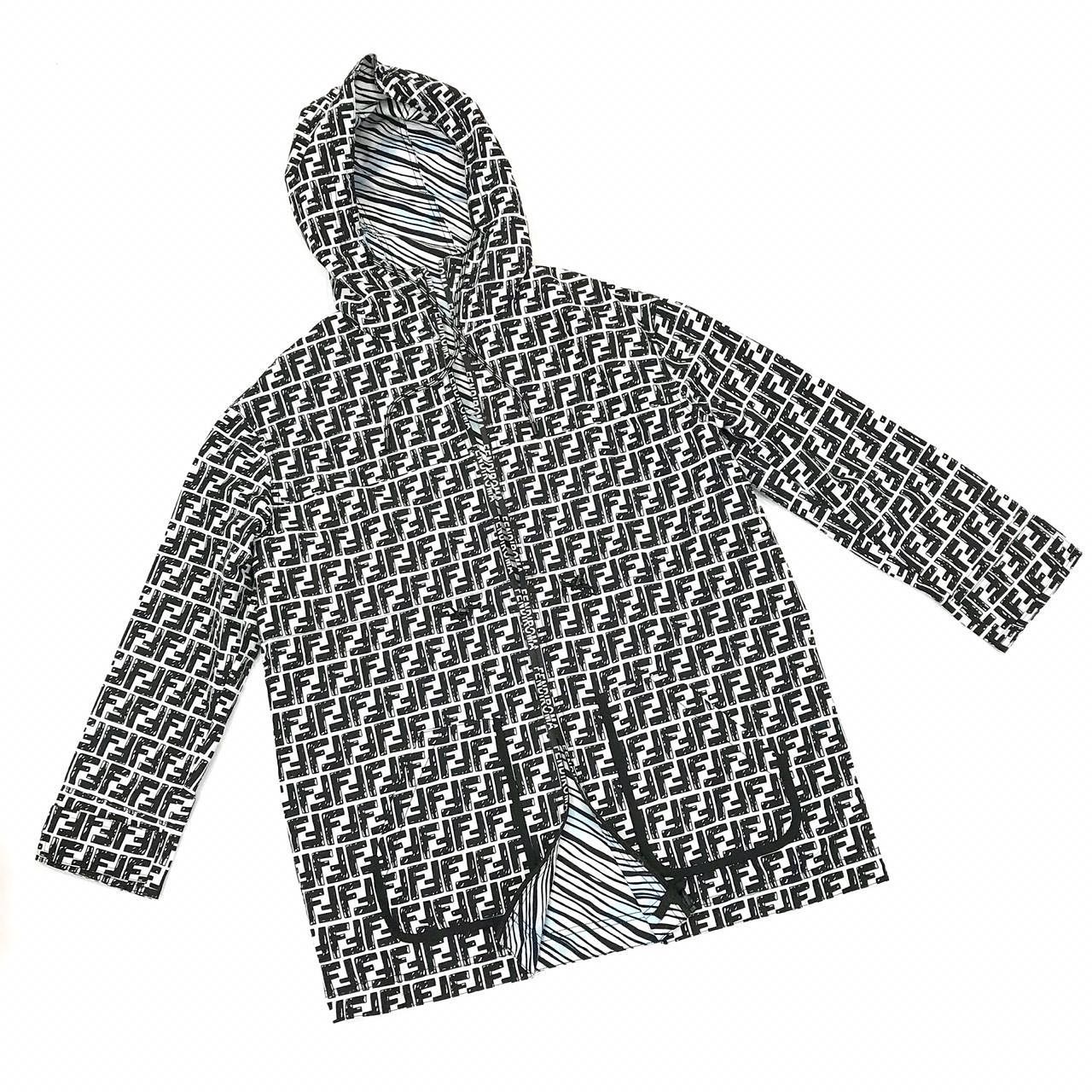 Эта двухсторонняя ветровка Fendi LUX-35052 сочетает в себе смелый дизайн и функциональность. Она идеально подойдет для создания эффектных образов в стиле casual. Одна сторона ветровки покрыта узнаваемым монограммным принтом Fendi, другая – предлагает более минималистичный вид с полосатым подкладом.
