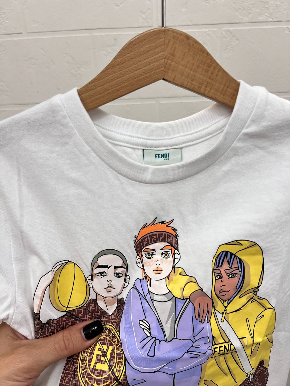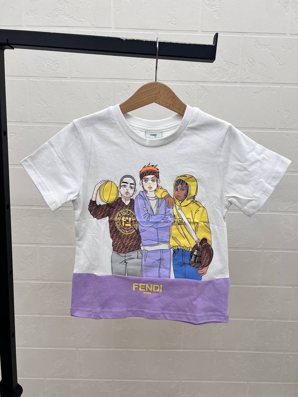 Футболка Fendi LUX-108367 — это стильная футболка от известного бренда, выполненная в ярком и современном стиле. Она сочетает в себе классический крой и интересные дизайнерские решения, делая её отличным выбором для создания модных образов. Футболка выполнена в белом цвете с ярким принтом, а также с элементами фиолетового цвета внизу изделия.