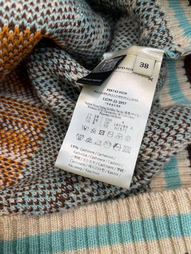 Кардиган Fendi (LUX-98451) – это стильный предмет гардероба, выполненный в узнаваемом дизайне бренда. Кардиган в основном серого цвета с красочным узором, который включает элементы голубого и коричневого цветов. Текстура изделия — плотная вязка, что делает его идеальным выбором для прохладной погоды.