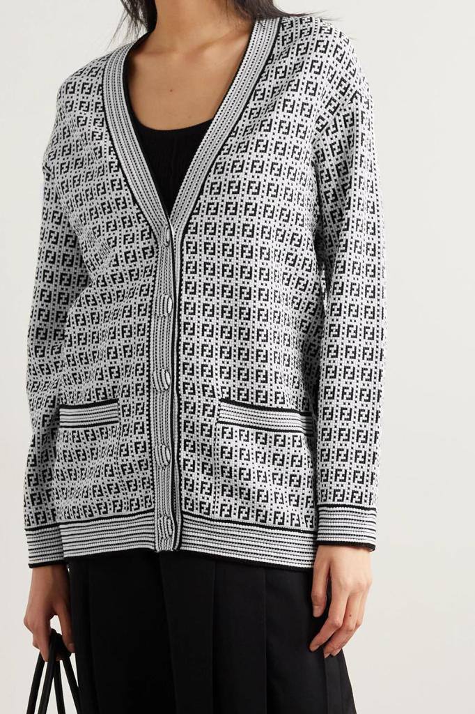 Элегантный кардиган Fendi LUX-51338 в черно-белой гамме представляет собой стильное дополнение к любому гардеробу. Изделие выполнено в узнаваемом дизайне бренда, подчеркивая изысканность и утонченность. Классический силуэт кардигана делает его универсальным предметом одежды.