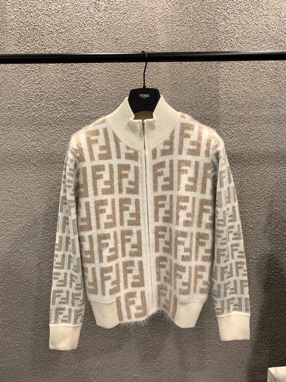 Кофта Fendi LUX-76233 - это стильная кофта с логотипом бренда. Кофта выполнена в белом цвете с узором, а также имеет высокий воротник и застежку-молнию. Эта кофта подойдет для создания стильных и комфортных образов.