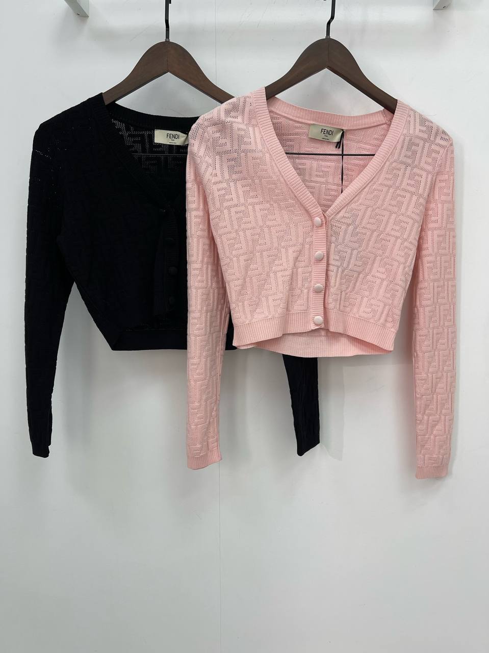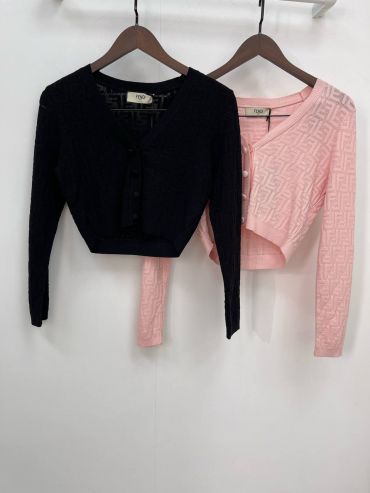 Кофта Fendi LUX-78892, представленная на изображении, выполнена в нежно-розовом цвете и имеет классический силуэт с V-образным вырезом. Кофта украшена фирменным узором бренда. Эта кофта подойдет для создания стильных и элегантных образов.
