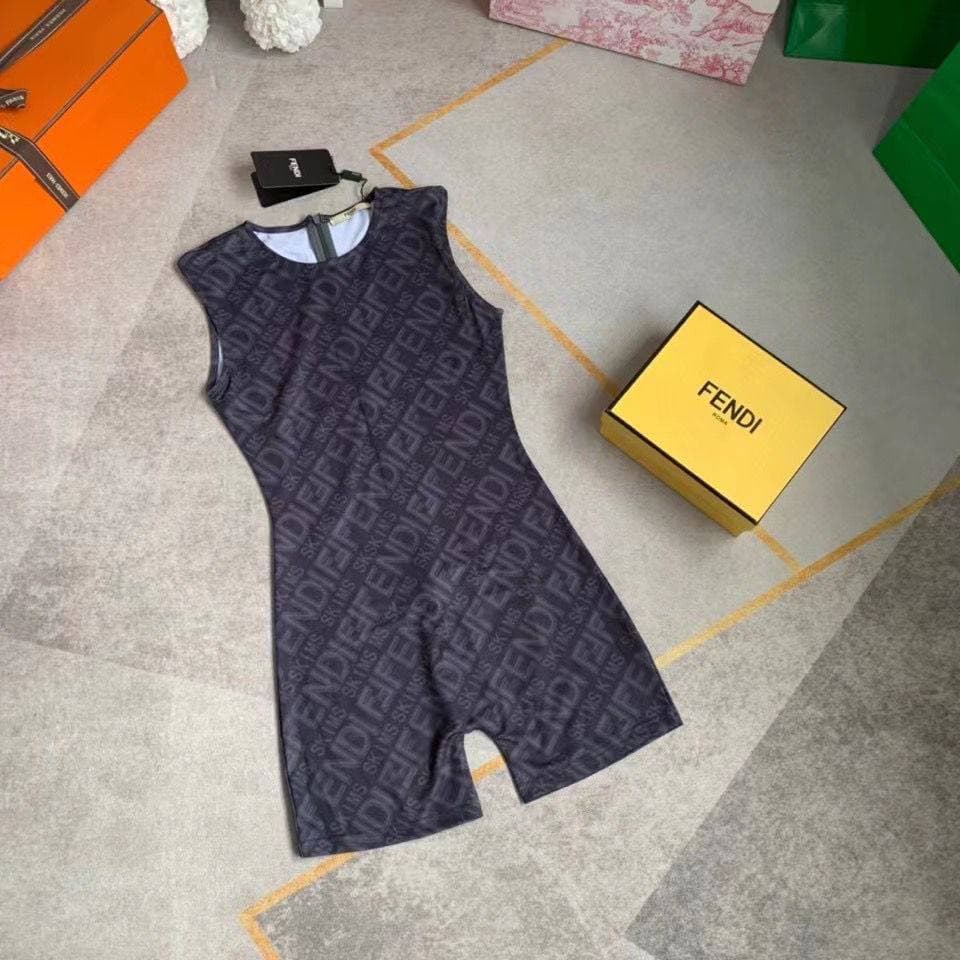 Комбинезон Fendi LUX-60905 представляет собой стильный и современный предмет одежды. Изделие выполнено в темно-сером цвете с узнаваемым монограммным принтом Fendi, что подчеркивает его принадлежность к люксовому бренду. Дизайн комбинезона с короткими штанинами и отсутствием рукавов делает его идеальным для летнего сезона или как элемент многослойного образа.
