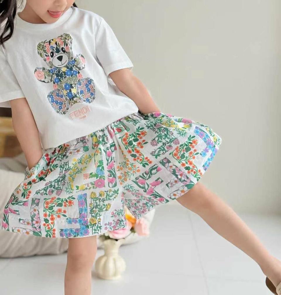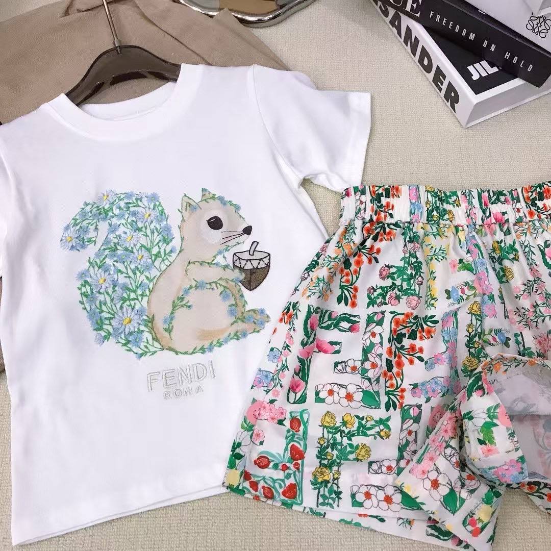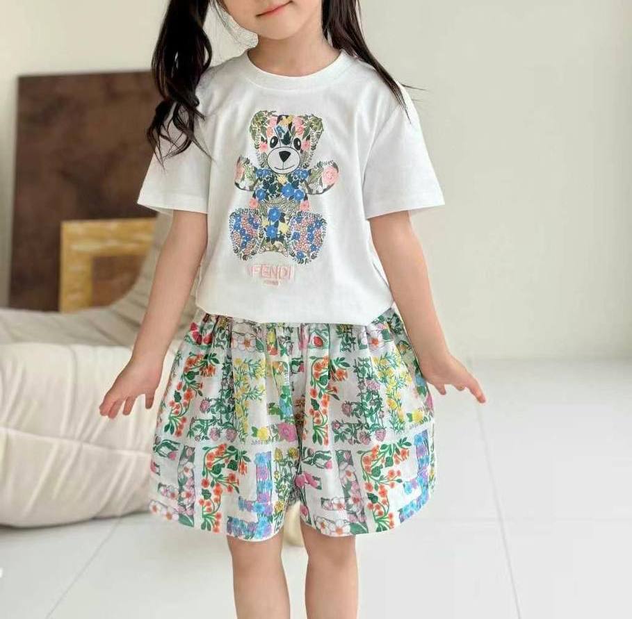 Комплект Fendi LUX-121305 представляет собой стильный и яркий ансамбль для девочек. Он включает в себя футболку с принтом мишки и шорты с цветочным рисунком. Этот комплект добавит красок в гардероб вашей юной модницы.