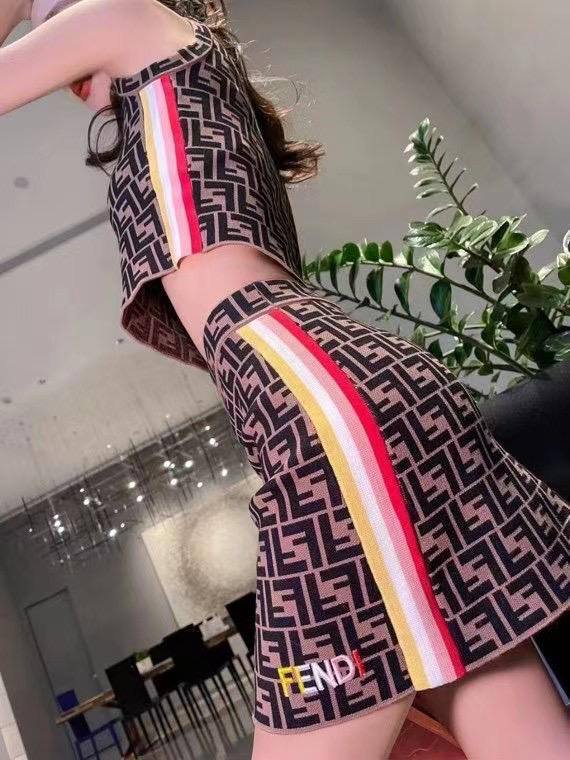 Этот женский костюм Fendi LUX-49517 — это стильный комплект, состоящий из топа и юбки, выполненный в фирменном дизайне бренда. Костюм идеально подходит для создания модного и элегантного образа, будь то повседневный выход или особый случай.