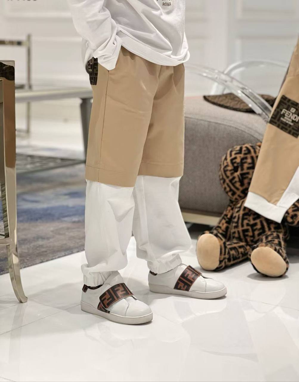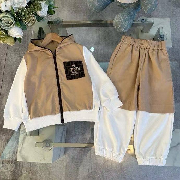 Костюм Fendi LUX-115919 — это стильный спортивный костюм для детей, который сочетает в себе комфорт и элегантность. Комплект выполнен в двух контрастных цветах — бежевом и белом, что придает ему современный вид. Костюм идеально подходит для повседневной носки, прогулок и активного отдыха.