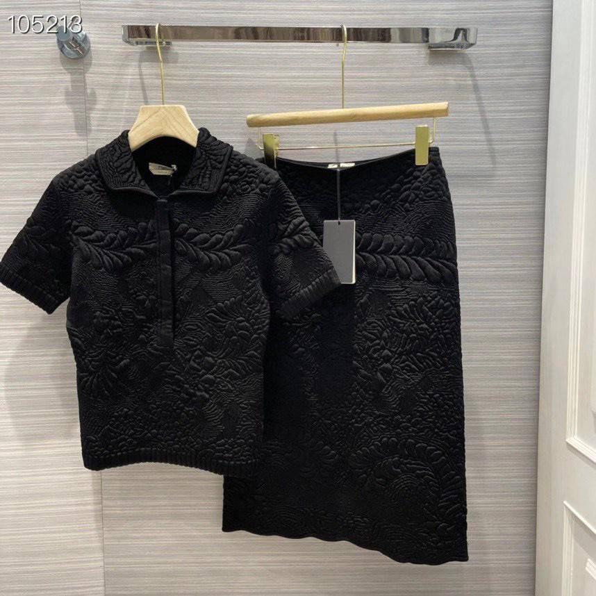 Представленный Fendi костюм LUX-48165 — это элегантный комплект, состоящий из короткого топа с воротником-поло и юбки, выполненный в классическом черном цвете. Оригинальный объемный узор, напоминающий растительные мотивы, придает изделию уникальность и изысканность, делая его актуальным выбором для ценителей люксового стиля. Этот костюм идеально подходит для создания утонченных образов как для повседневной носки, так и для особых случаев.