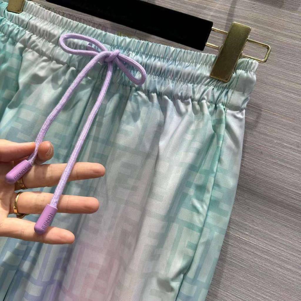 Костюм спортивный Fendi LUX-87198 - это стильный спортивный костюм для активного образа жизни. Он выполнен в ярких градиентных оттенках, переходящих от нежно-сиреневого к бирюзовому. Костюм состоит из куртки с капюшоном и брюк, идеально подходящих для повседневной носки и занятий спортом.