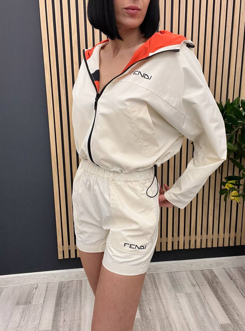 Спортивный костюм Fendi LUX-105484 представляет собой стильный ансамбль, сочетающий в себе комфорт и узнаваемый дизайн бренда. Комплект состоит из куртки и шорт кремового цвета с оранжевой подкладкой капюшона. Костюм предназначен для активного отдыха, прогулок и создания модных образов.